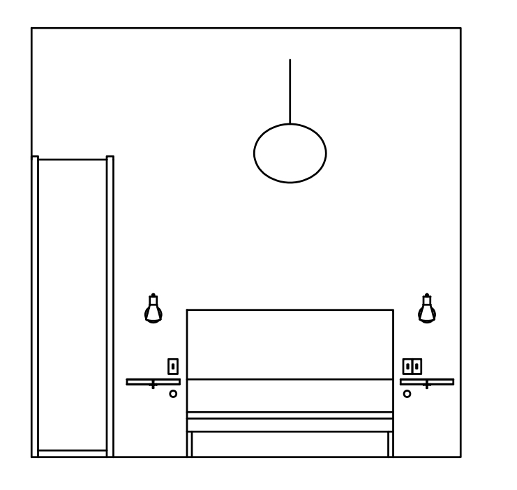 bright scandinavian bedroom ash wood floors ash wood cabinet walls are painted like paint chip in the photo bed is walnut like in photo wall sonces are sage green pendnat light is off white linen