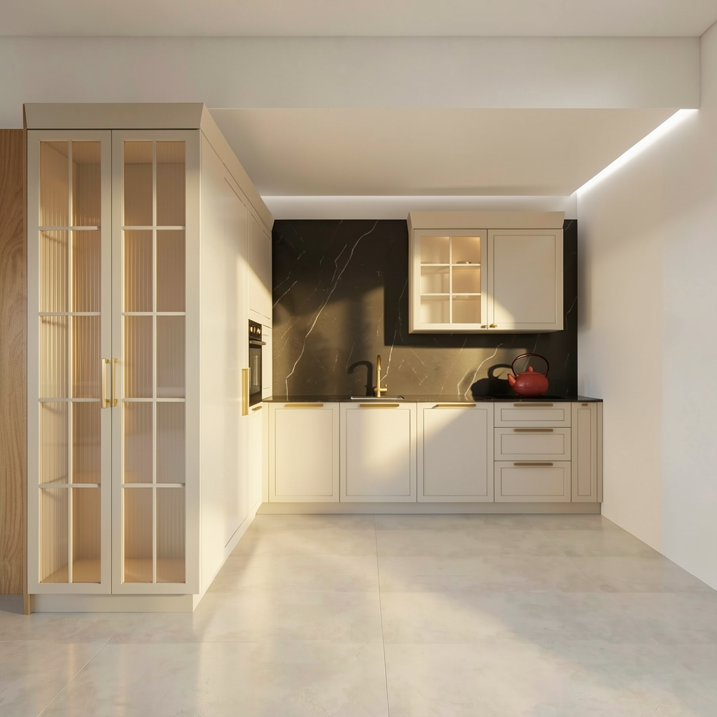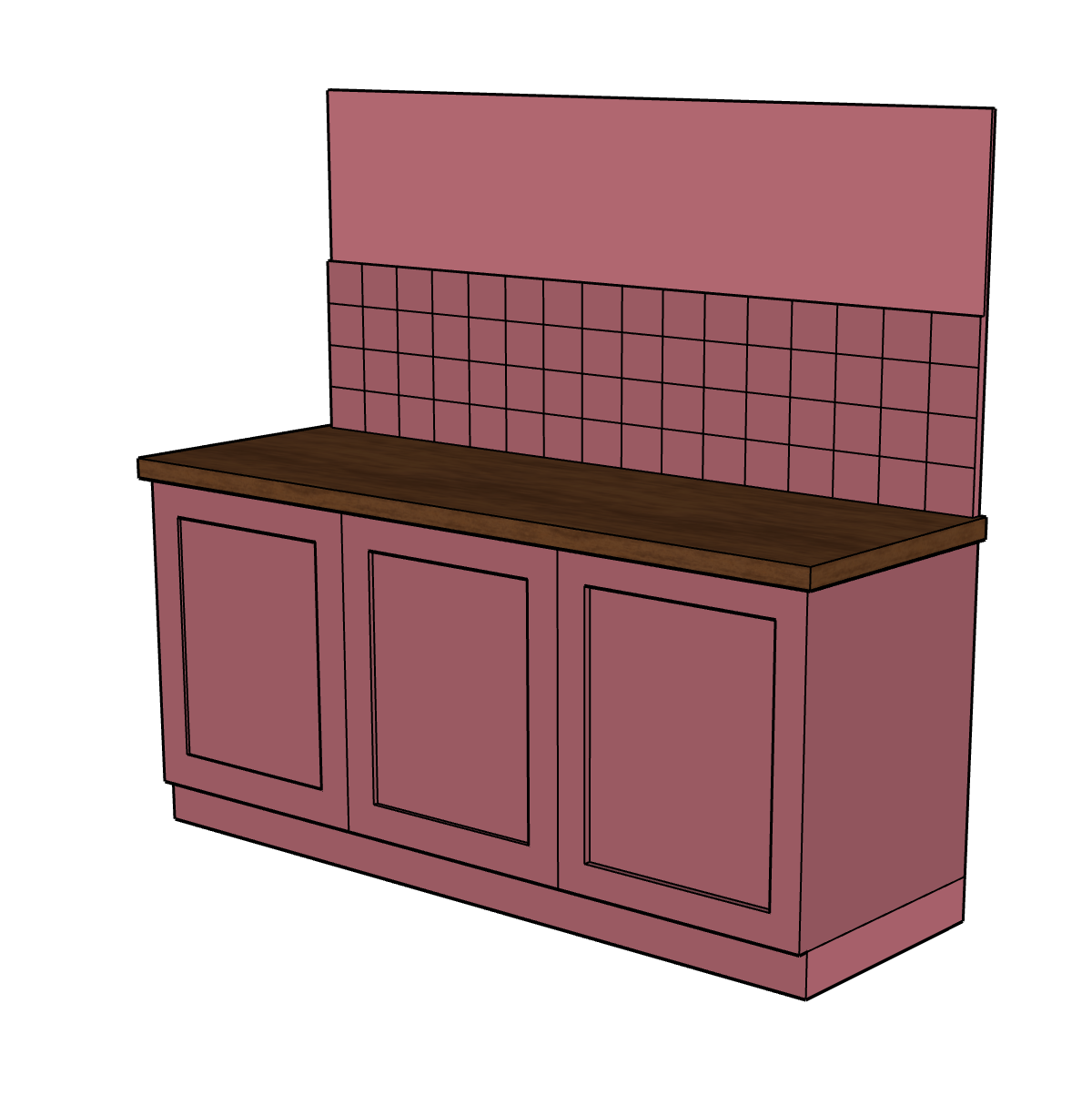 glazed dark pink tiles dark dark wood work surface dark pink painted cupboards
