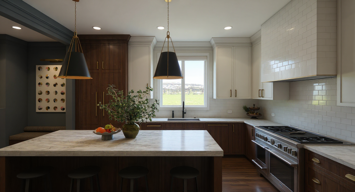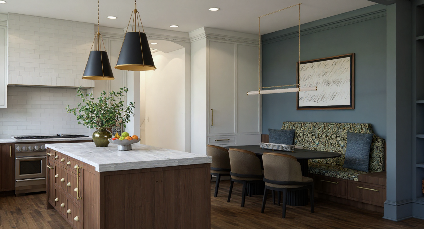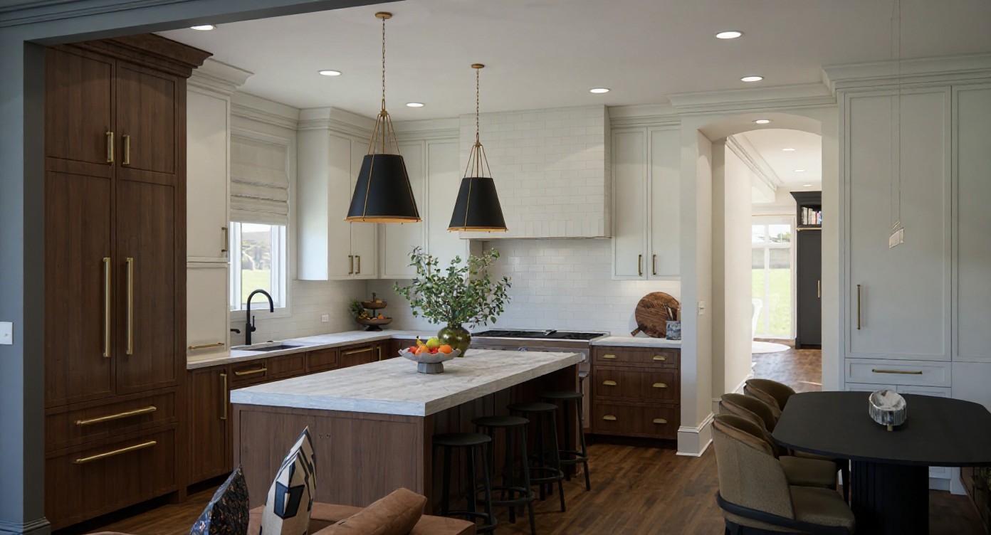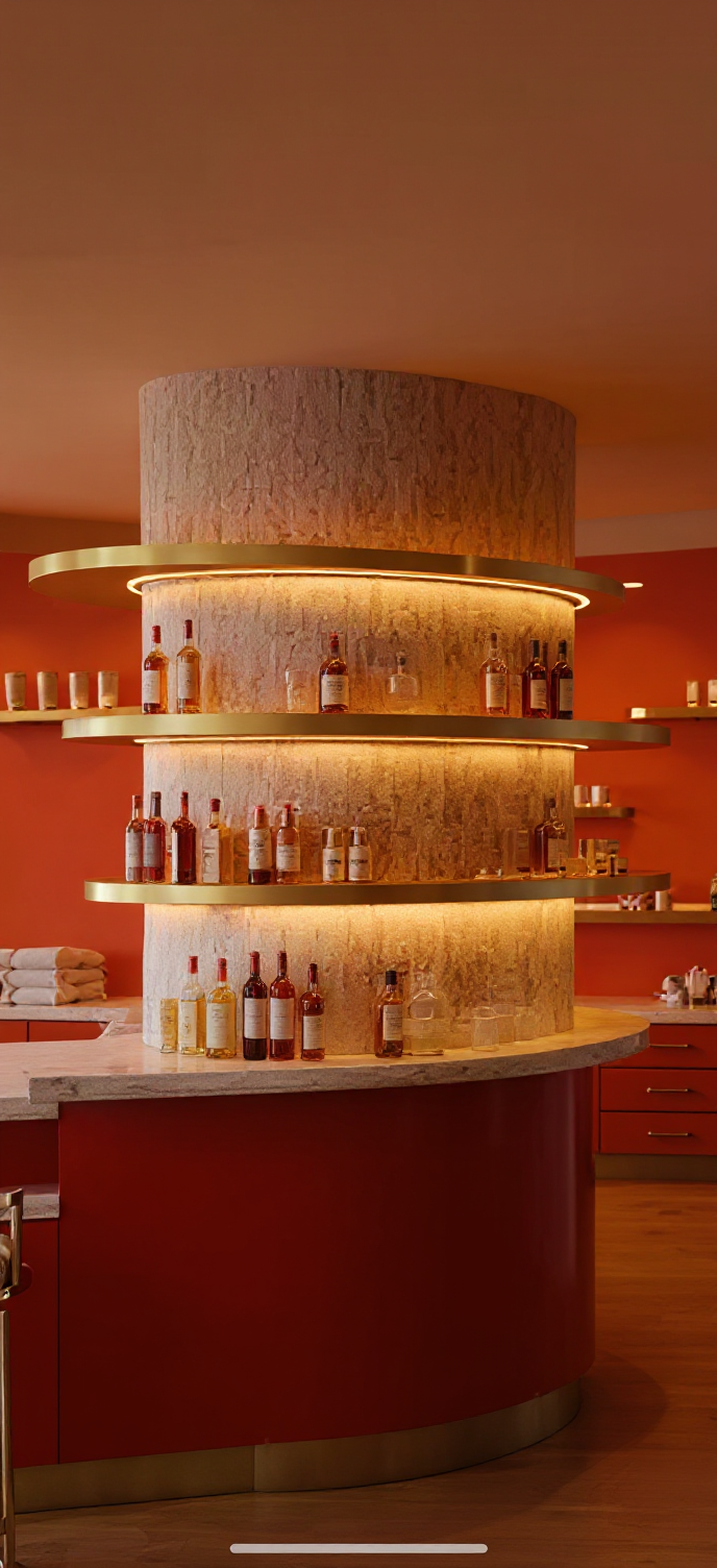 transform the provided restaurant interior image into a high end photorealistic render with warm golden hour atmosphere soft glowing highlights and relaxed upscale coastal energy while keeping everything exactly the same same proportions same bar layout same chairs same booth seating same ceiling curves same wall finishes same yellow curtains same materials and same spatial configuration do not move or alter any objects geometry textures colors or furniture positions add premium table settings including wine glasses champagne flutes tropical style cocktails elegant plates cutlery cloth napkins and a seafood tasting arrangement with oysters while keeping all tables and chairs in their exact positions include modern young guests seated at the bar and at selected tables casually social correctly scaled tastefully integrated without crowding or obstructing architectural details add two bartenders behind the bar preparing drinks interacting naturally while preserving the bar s structure and alignment on the bar shelves add alcohol bottles elegant glassware and reflective glass or mirror backing arranged tastefully without modifying shelf geometry the mosaic seafood display must clearly appear filled with ice fish lobsters shrimp and shellfish with cool reflections and moisture while keeping its exact position and shape unchanged lighting should emphasize golden hour warmth gentle reflections soft shadows enhanced color richness and luxurious catalog level realism improve depth and realism through wood grain richness marble shine brass highlights fabric texture and polished clarity while keeping the entire scene exactly as originally designed