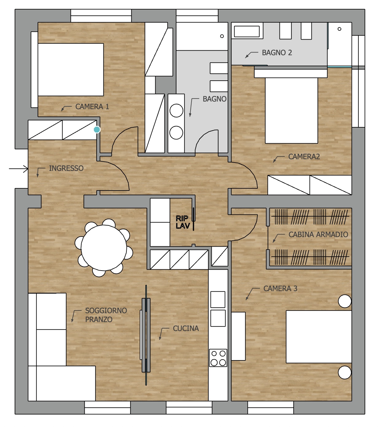 convert this floor plan into a realistic isometric 3d view of a full house show the space from an elevated angle with furniture walls and details visible scandinavian style warm lights use the same furniture as shows on the plan do not change the orientation of the floorplan