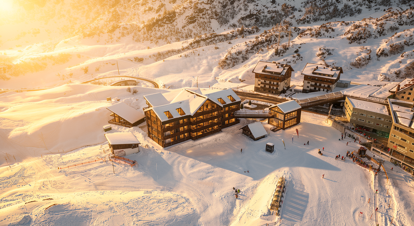important preserve the existing geometry and the existing context exactly as provided preserve the existing windows do not add new windows do not modify alter reinterpret add remove scale or reshape any geometry do not change the site surroundings street layout neighboring buildings vegetation or context elements do not modify geometry scale proportions buildings road layout sidewalks or surrounding context in any way do not modify text soft noon atmosphere diffused neutral natural daylight with subtle cold tones cinematic architectural mood warm interior lighting 3000k glowing from inside creating strong contrast between cool exterior and warm interior large glass surfaces with realistic reflections soft mirror effect subtle environmental reflections of sky and surroundingsimportant do not add new windowsremove the peoplemake it darker