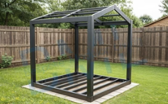 put in backyard on a concrete base the frame size is to be 3m x 3 3m make in portion to the backyard
