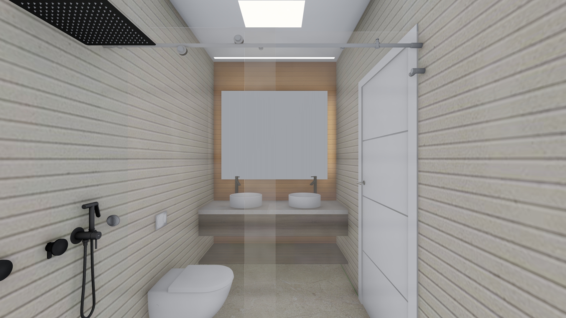 quiero que el rodapie sea gris y quiero que la iluminacion sea calida no tan calida entre la actual y blanca quiero que la iluminacion sea un poco mas calida con los mismos criterios esta nueva imagen el cuadrado del fondo es un espejo la iluminacion un poco mas blanca al fondo hay espejo el cuadrado del fondo es un espejo