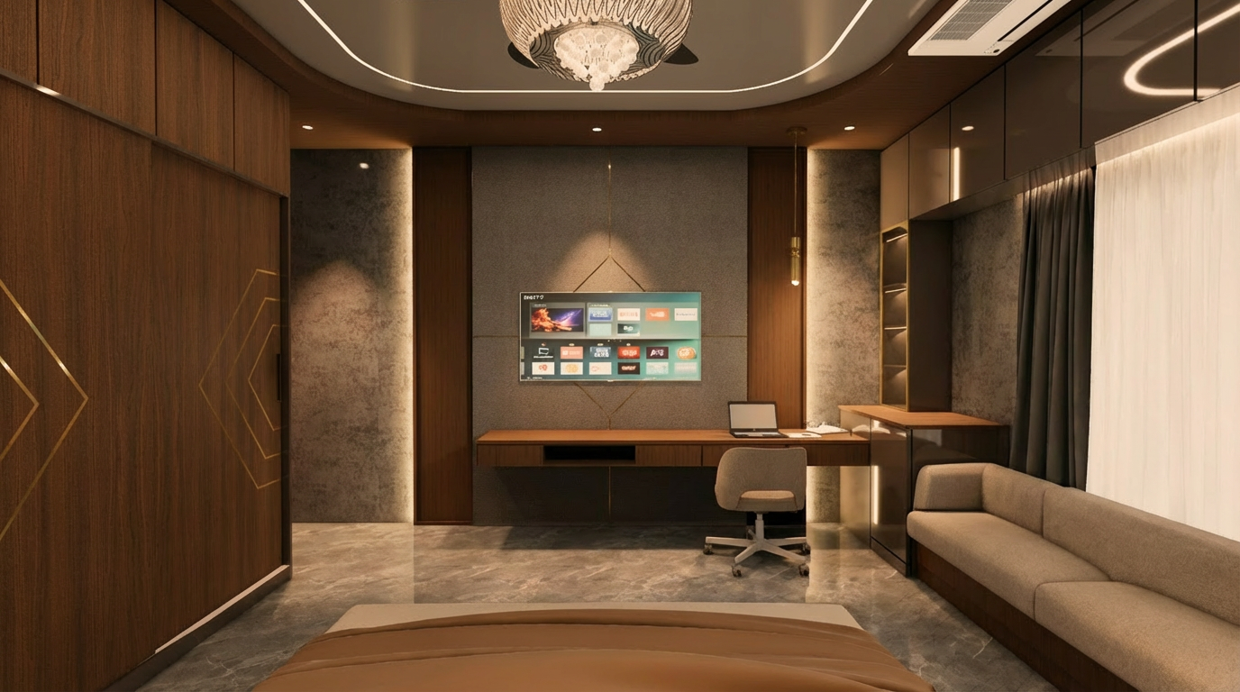 make the tv panel fabric to be beveled in the edges of groove and make it give padded feeling and do not change the design