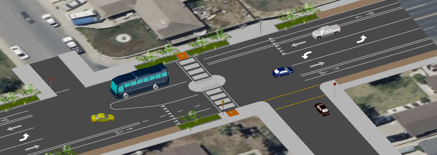realistic street intersection with cars and city context make look realistic architecture