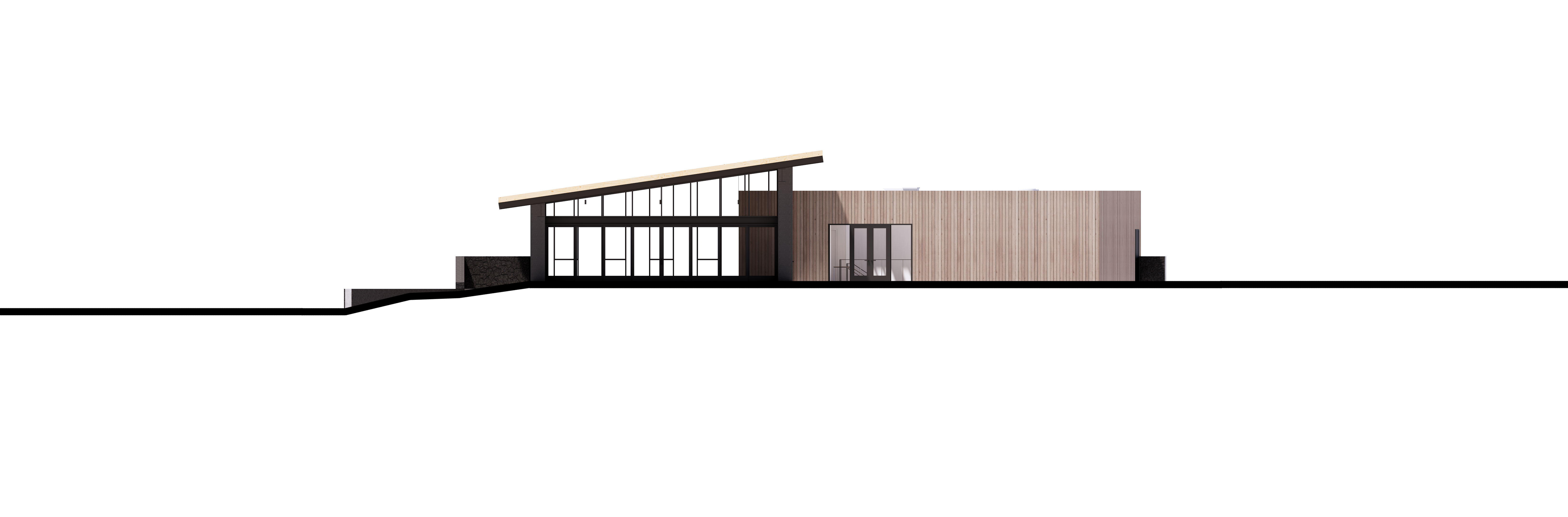 smooth grey vertical wood siding steel wide flange beams keep white background