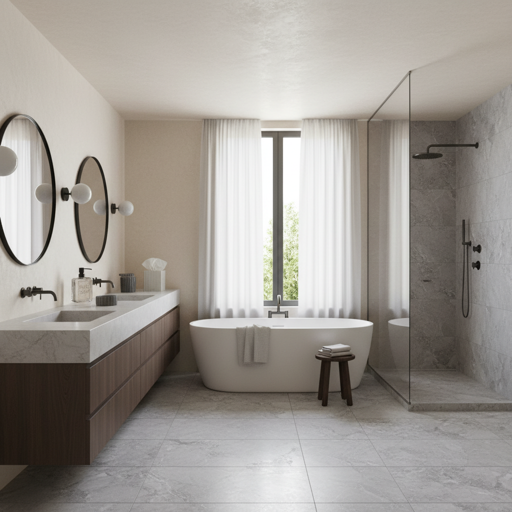 white model study artificial soft lighting white ceiling off white terrazzo tiled floor applied to the red floor surface in main image show glass walls to the consult rooms stairs should all read as types of white replace the men figures as women
