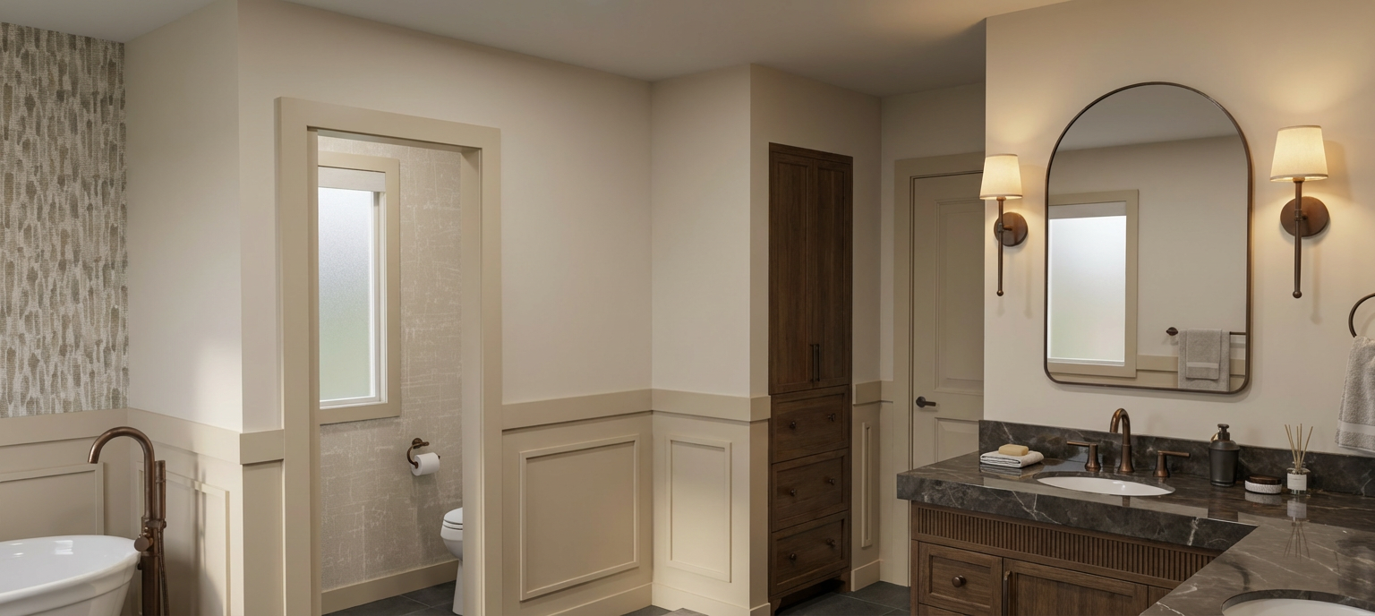 afternoon lighting large oak and maple trees in the background white brick house with white windows maintain all materials and colors of windows doors shutters and other architectural features