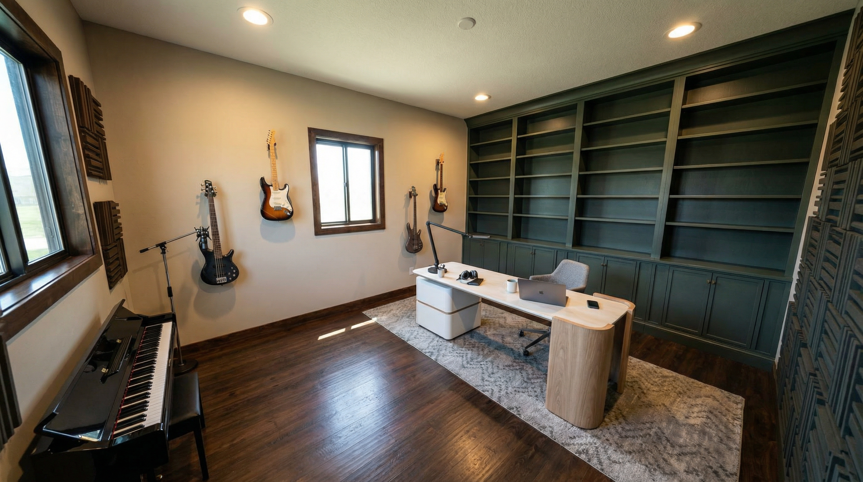render this in high quality no changed in openings and walls this is a car tire shop add wheels display and render materialities also add proper lighting