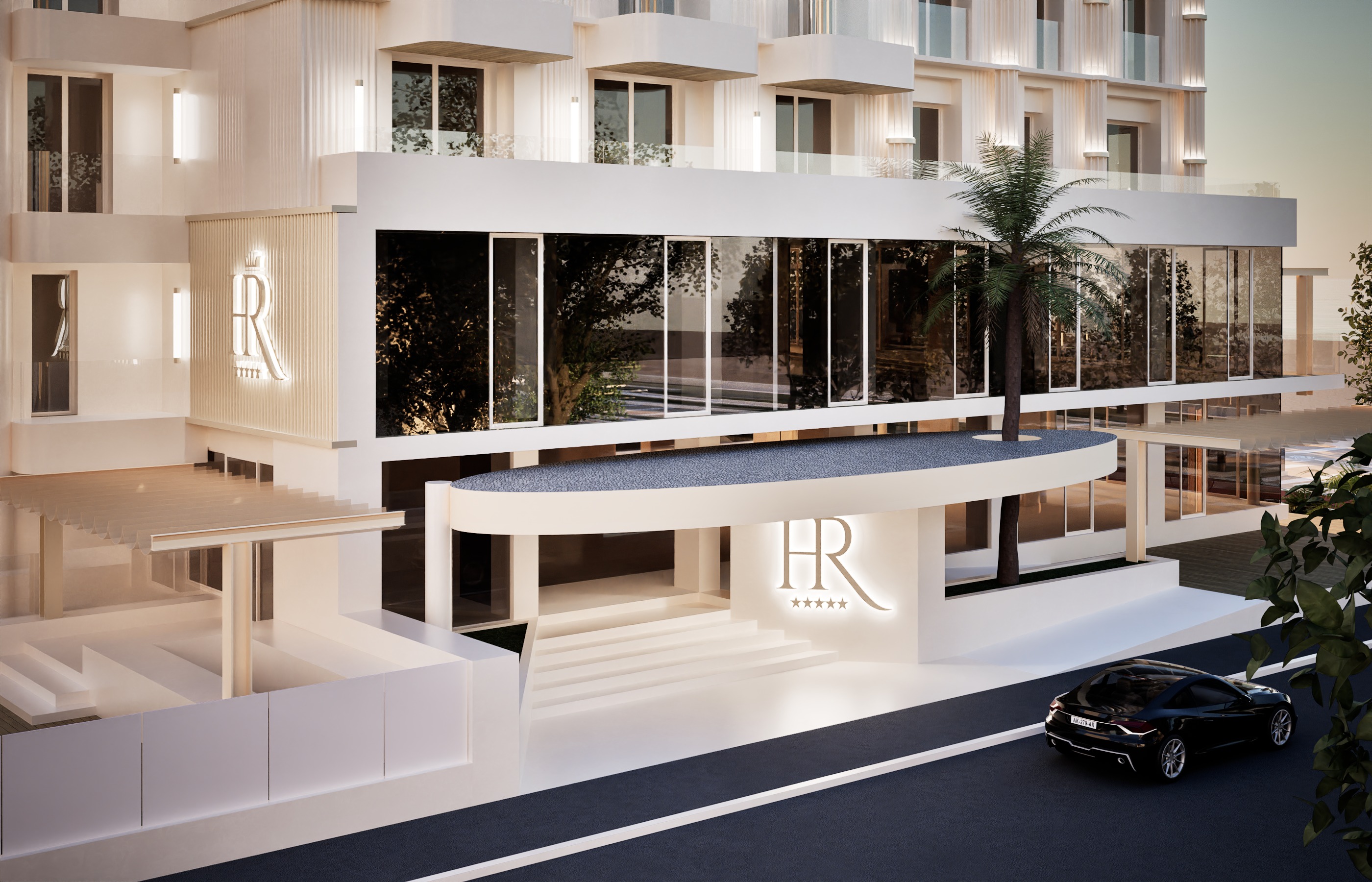aggiungi persone aggiungi del verde nelle fioriere e sopra la pensilina rotonda dove vedi i ciottoli nel bar a sinistra sotto la tenda aggiungi un barista e degli oggetti che aiutino a capire che un bar di una piscina di un hotel a 5 stelle