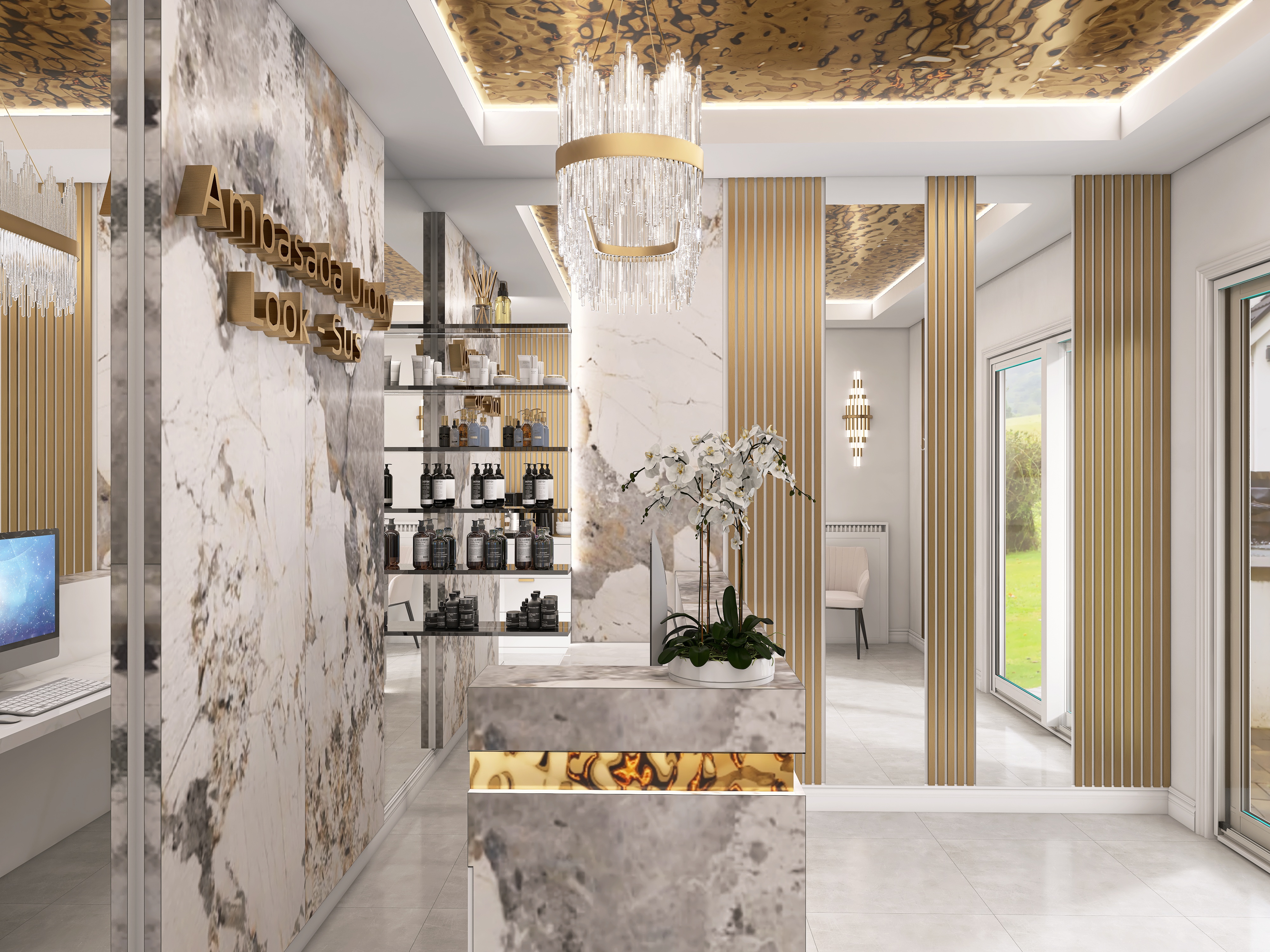 nic tutaj nie zmieniaj zostaw tak sam ostro zdj cia te same kolory wszystko zostaw bez zmian jedyne co zmie to lekko pod wietl napis na cianie delikantym ledem i niech lampa nad recepcj leciutko b dzie wieci