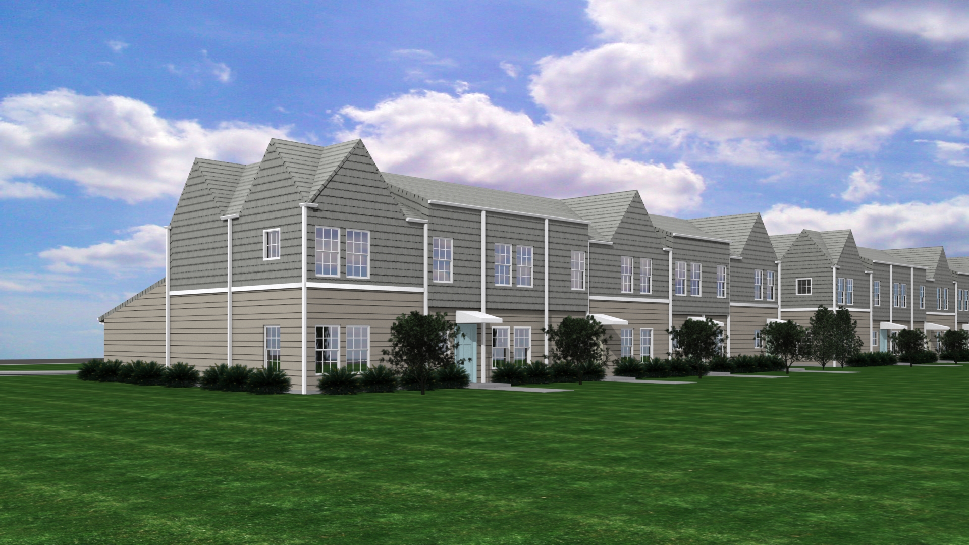 manicured landscape with bushes flowers frame with trees trees in the background hard rule do no change the architecture maintain colors