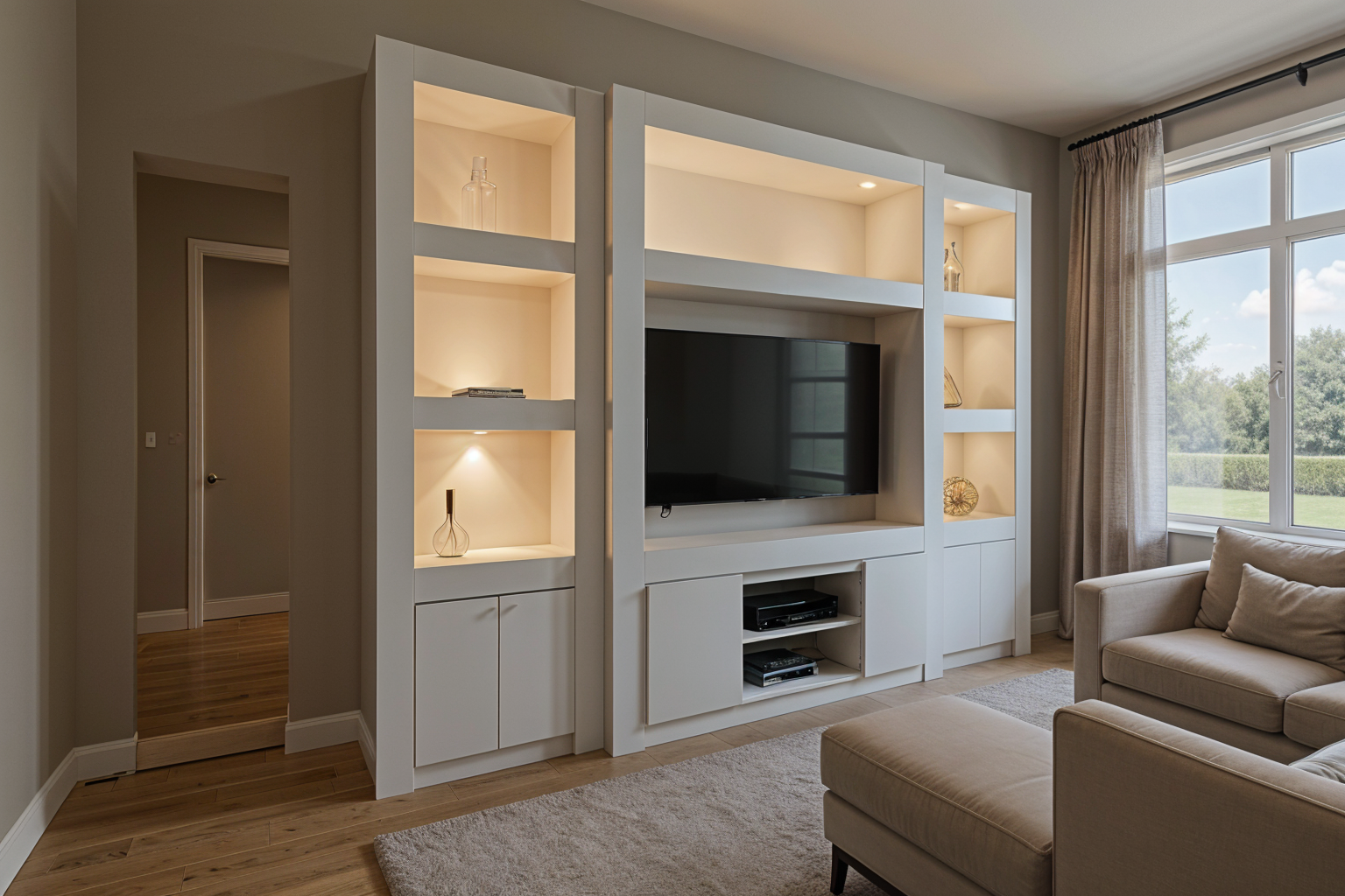 mediterranean style kitchen and living space dining table same direction as the island floors natural oak island and rangehood are micro cement countertops are vanialla marble cabinets slim shaker