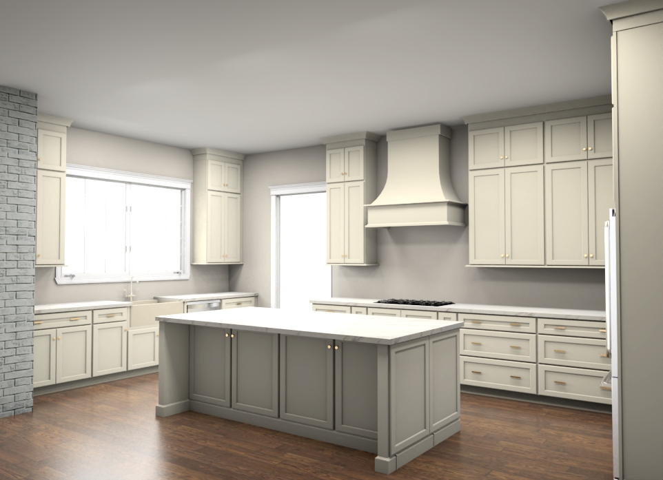 traditional kitchen with cream cabinets taj mahal countertops oak flooring and zellige backsplash tile add room baseboard and crown molding magazine look image sunlight streaming through window