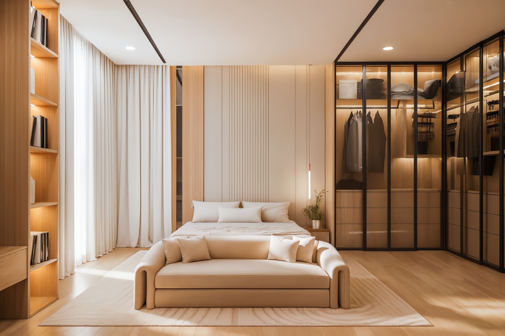 enhance this basic image without changing any layout design elements or element distribution maintain accurate geometry and structure create a realistic interior design that highlights soft ambient lighting realistic shadows and high quality materials in furniture and decor natural daylight should appear diffused through the windows render the design in a realistic style using corona technology