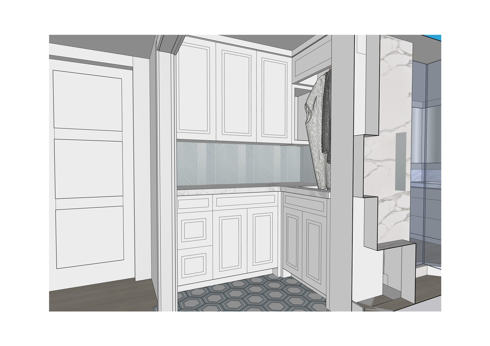 transform the provided elevation into a hyper realistic interior photograph that is indistinguishable from a real professionally shot interior design photograph this must read as a real space captured by a camera not a rendering not a visualization not architectural cg not concept art and not an illustration geometry lock non negotiable preserve the exact original geometry layout proportions ceiling details wall depths panel divisions openings doors cabinetry locations millwork dimensions built ins and circulation paths with zero architectural changes nothing may move scale simplify or be reinterpreted geometry must remain absolutely unchanged camera derivation critical derive the camera position height angle and framing strictly from the uploaded elevation eye level interior photography centered or naturally balanced composition 24 35mm interior lens feel no dramatic angles no stylized framing do not reuse or approximate camera framing from any previous image remove all drawing artifacts completely remove all linework cad edges drafting outlines diagrammatic shapes sketch artifacts nothing may appear outlined flat schematic or illustrative the elevation must be visually reinterpreted as a finished real interior photograph material realism rules wood if present smooth solid plank material extremely subtle restrained grain matte or soft satin finish only no graphic patterns no decorative striping no visual noise wood must absorb light gently never glossy or sharp fabric upholstery if present soft compression subtle seams gentle shadowing natural fabric texture no flat color blocks stone slabs if present light natural veining soft organic variation low contrast no symmetry no bold or busy patterns stone must feel heavy and grounded walls fine surface texture slight tonal variation never flat paint edge construction realism all edges corners joints and transitions must be softly broken and physically realistic no razor sharp corners no cgi perfect edges slight construction tolerances only everything must read as fabricated installed and dimensional lighting photographic behavior lighting must behave like real high end interior photography natural daylight only unless otherwise specified realistic light bounce gentle shadow falloff uneven exposure distribution subtle brightness variation across surfaces avoid studio lighting uniform illumination over clean exposure global illumination look slight softness is preferred over sharpness camera image imperfections very important introduce subtle photographic characteristics gentle lens softness micro exposure variation natural contrast roll off mild atmospheric depth primary plane sharp background slightly softer the image must feel captured not generated absolute constraints no creative interpretation no stylization no exaggeration no added or removed elements any deviation from the original elevation geometry or intent is unacceptable negative prompt always include architectural rendering 3d visualization cgi unreal engine octane vray sketchup look flat textures graphic lines outlined edges over sharpened studio lighting concept art illustration ai look plastic materials glossy wood high contrast grain perfect symmetry keep design as shown in the picture keep the design as it is in image light cabinets are white and brown cabinets are white oak keep design in the image as it is