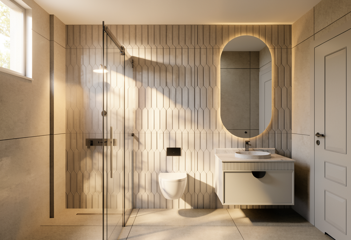 this is a house on top of small pond with small trees in the background the wall material is black burned wood please make it realistic and leave the landscape as it is the ground is dark brown with lush deciduous plants add darmera peltate plants under the house and around water leave the original structure i drawed the extent of the pond area in blue openings are in dark black