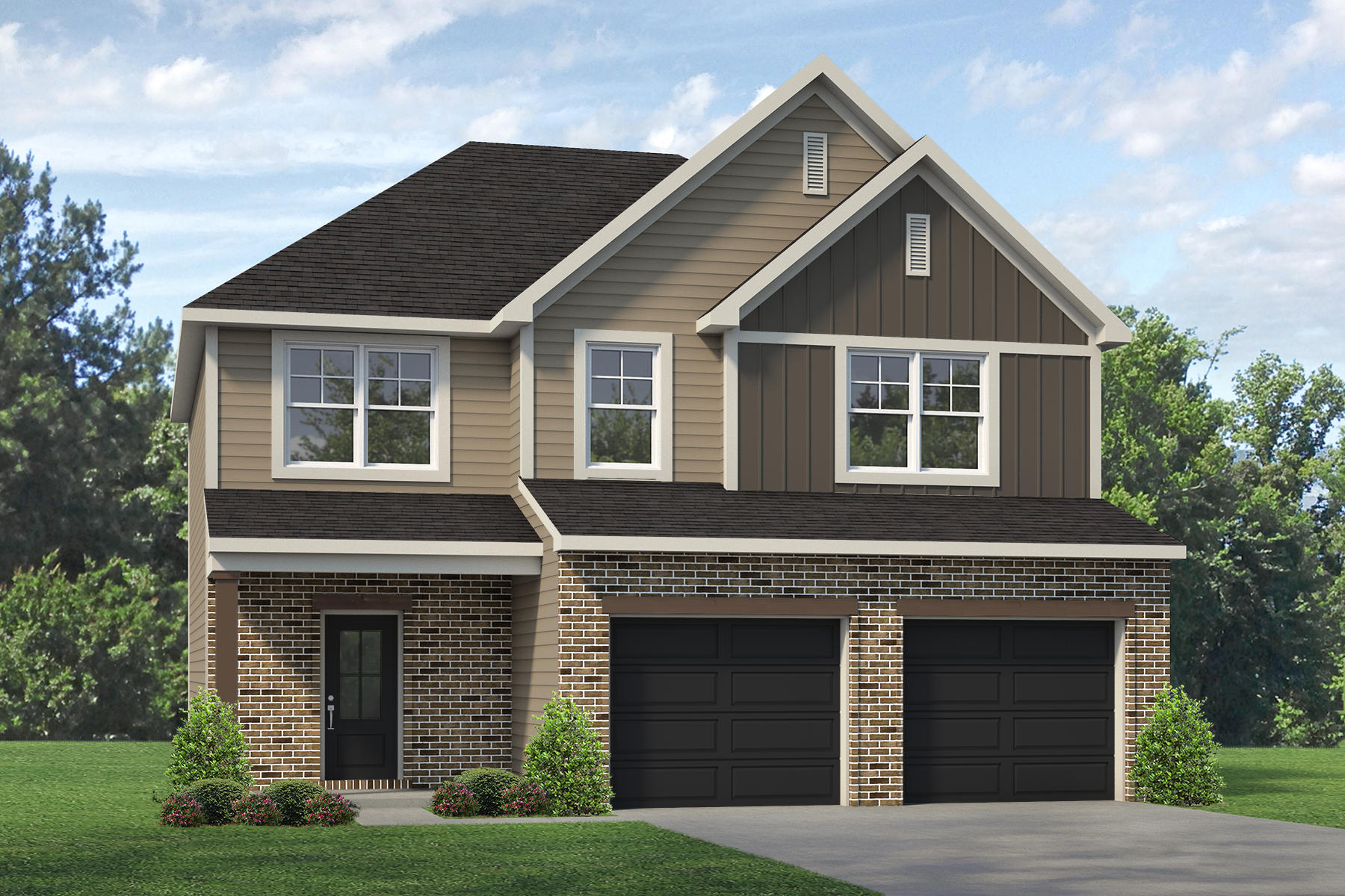 make this rendering more interesting but do not change the colors or any structural aspects of the home make it a bright sunny summer day