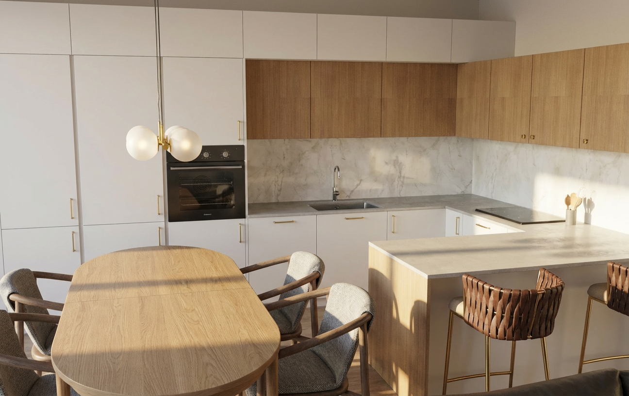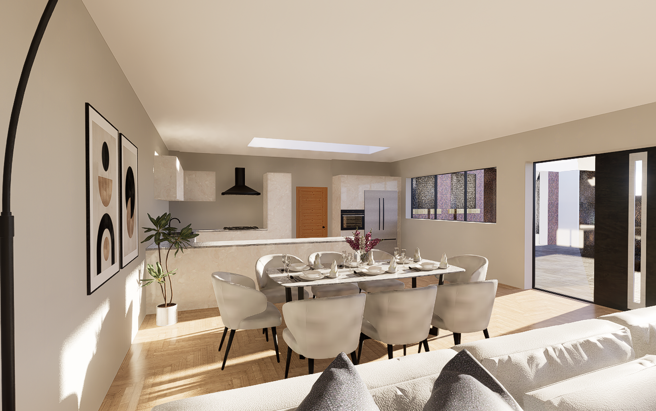dd lots of natural warm light add some downlights into the ceiling evenly spaced and flush with the ceiling make it look more realistic and add some led strip lights to the bottom of the kitchen wall mounted units