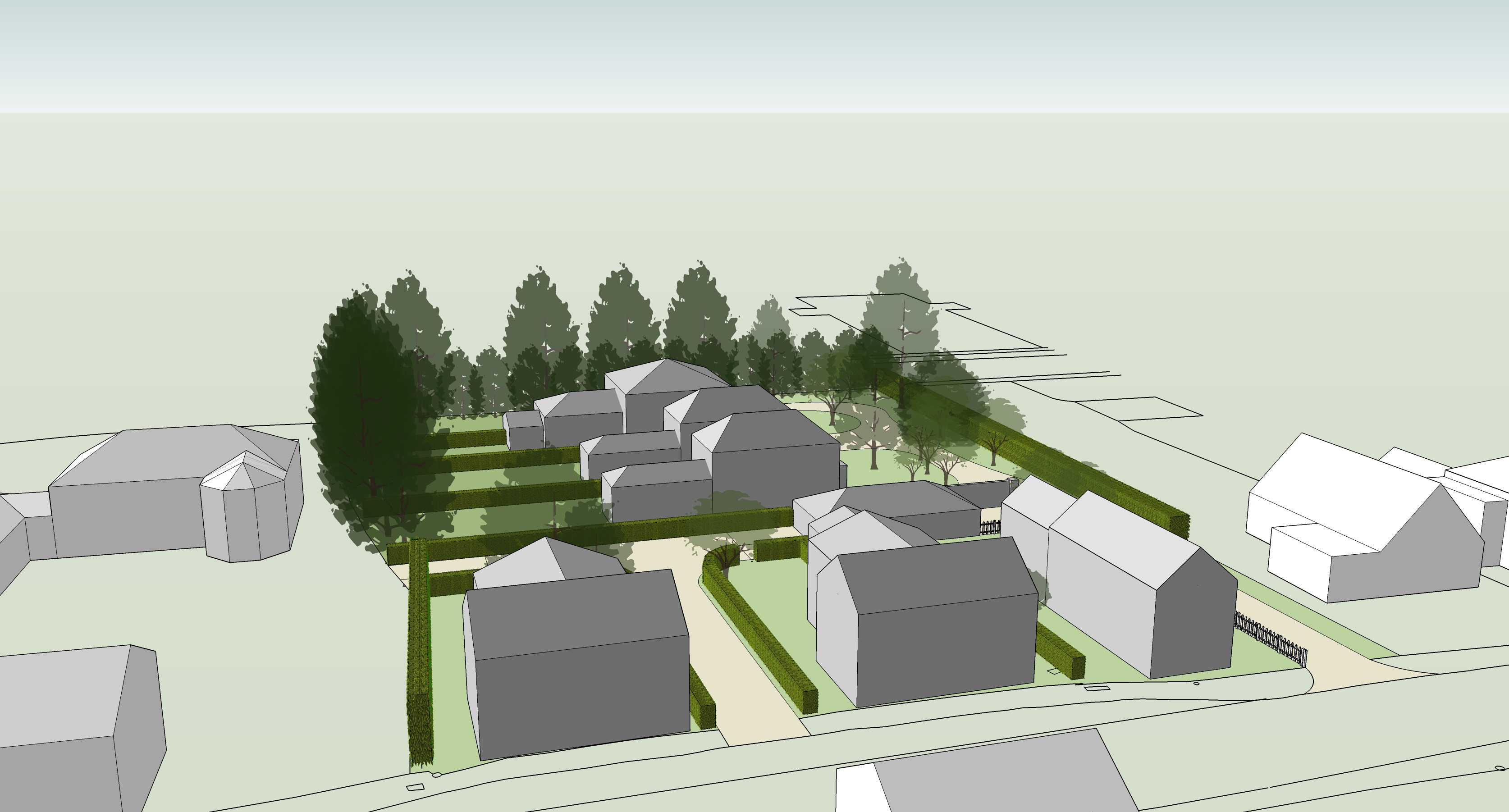 modernist wide angle shot housing vegetation lawn stone suburbia architecture