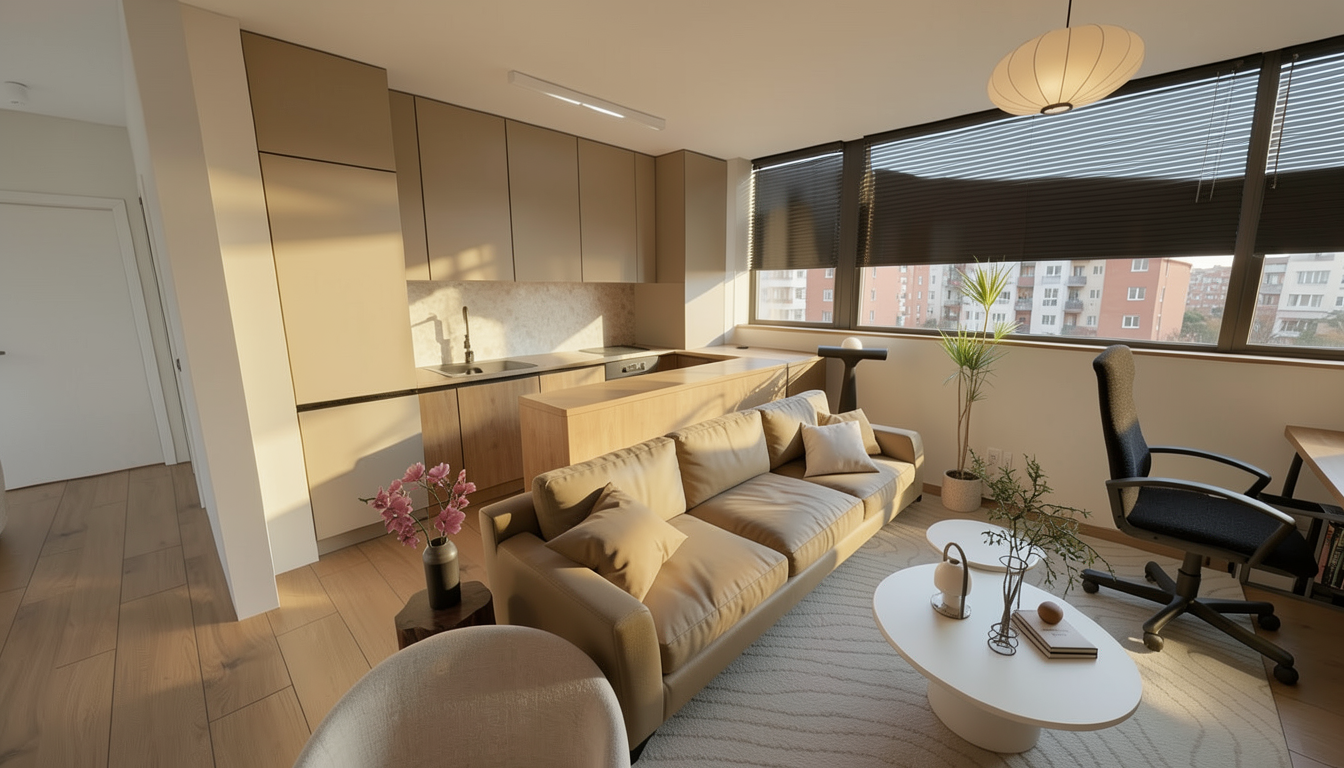 convert this floor plan into a realistic isometric 3d view of a full house show the space from an elevated angle with furniture walls and details visible white walls maple trim white 3 panel doors light wood flooring use the same furniture as shows on the plan do not change the orientation of the floorplan