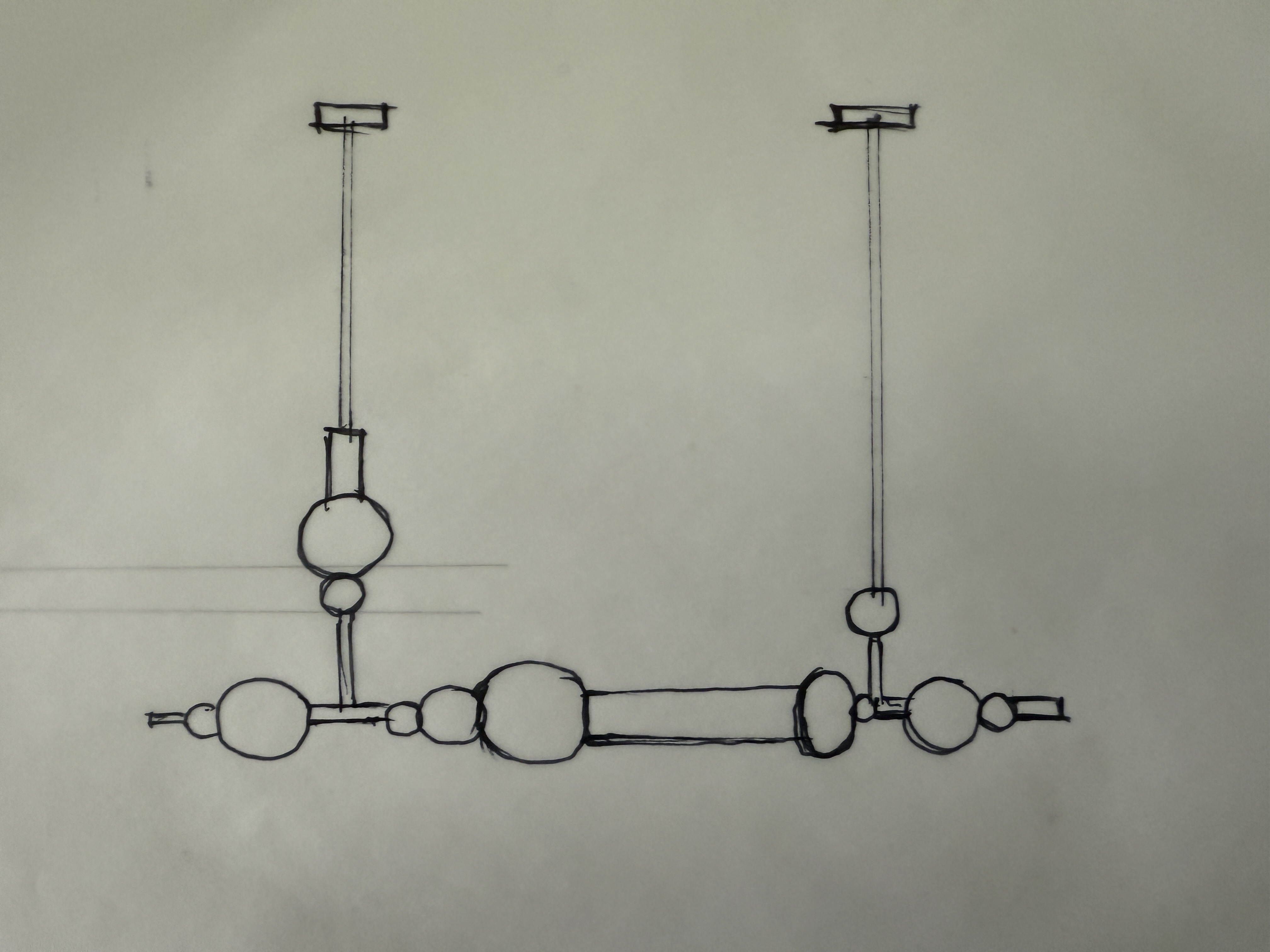 im designing a linear pendant light in glass and bronze for a bouve a dinning room table its 1400mm long see attached sketch