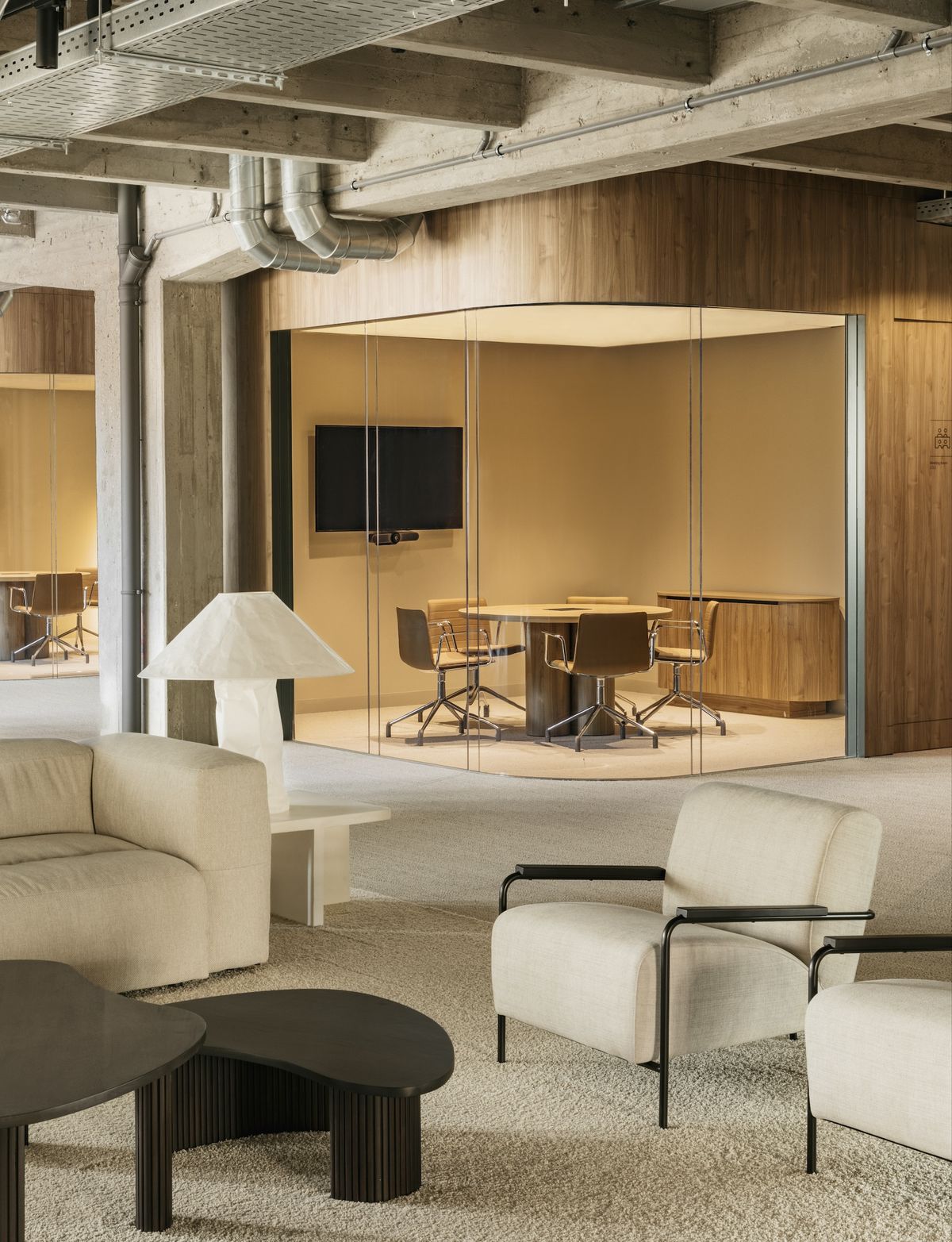 change the ceiling to a white open industrial ceiling