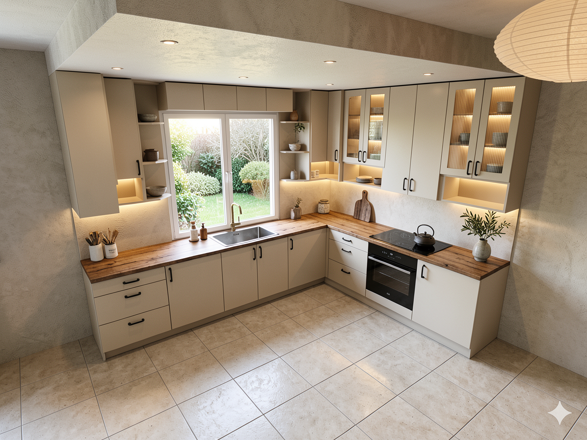 change wood to light oak and stone to white and grey stacked stone