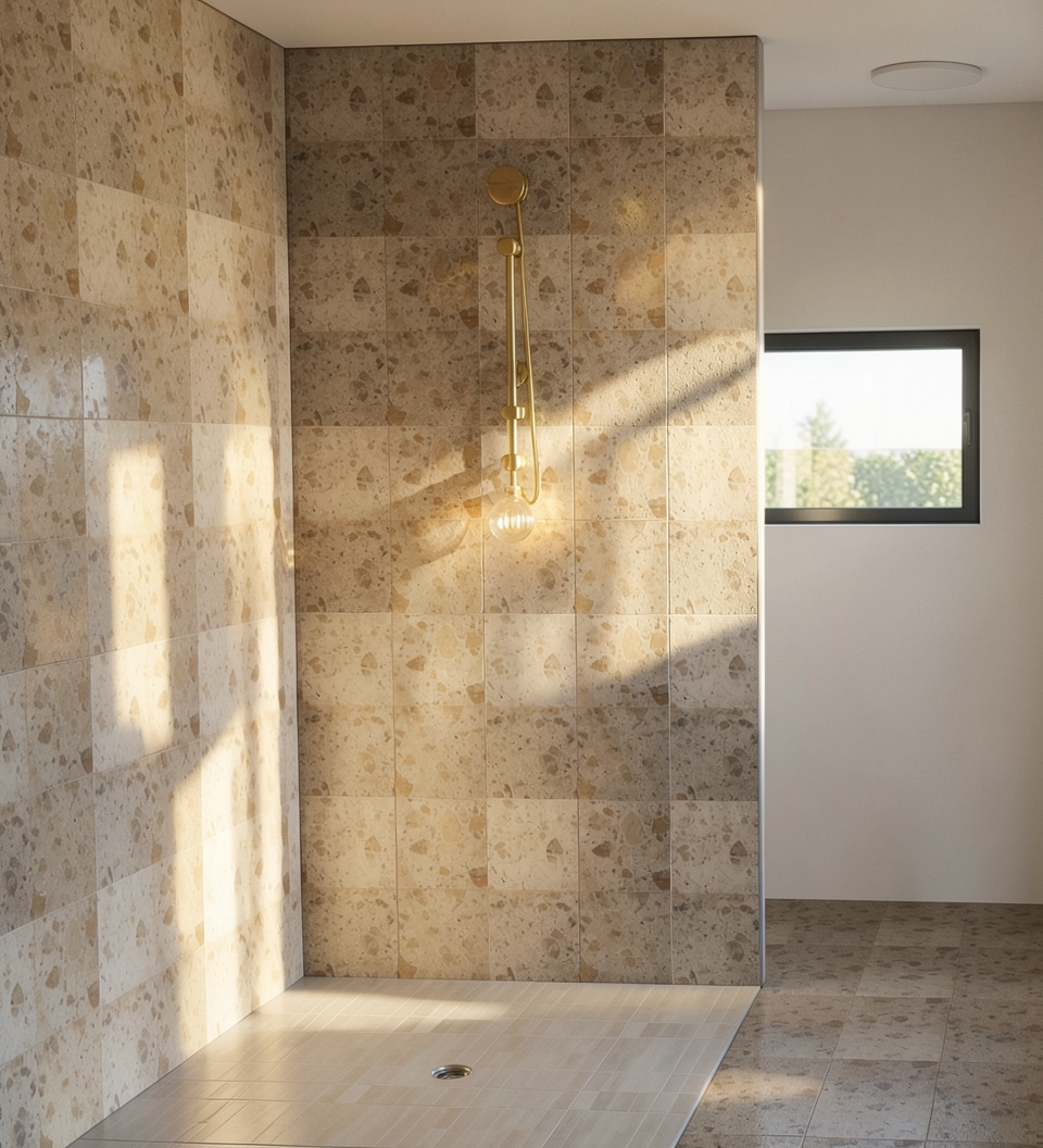 add sunbeds and umbrellas on top of tiles next to the pool