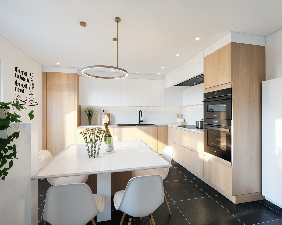 a super realistic render keep everything as it is add a shade to the balcony door and warm lights