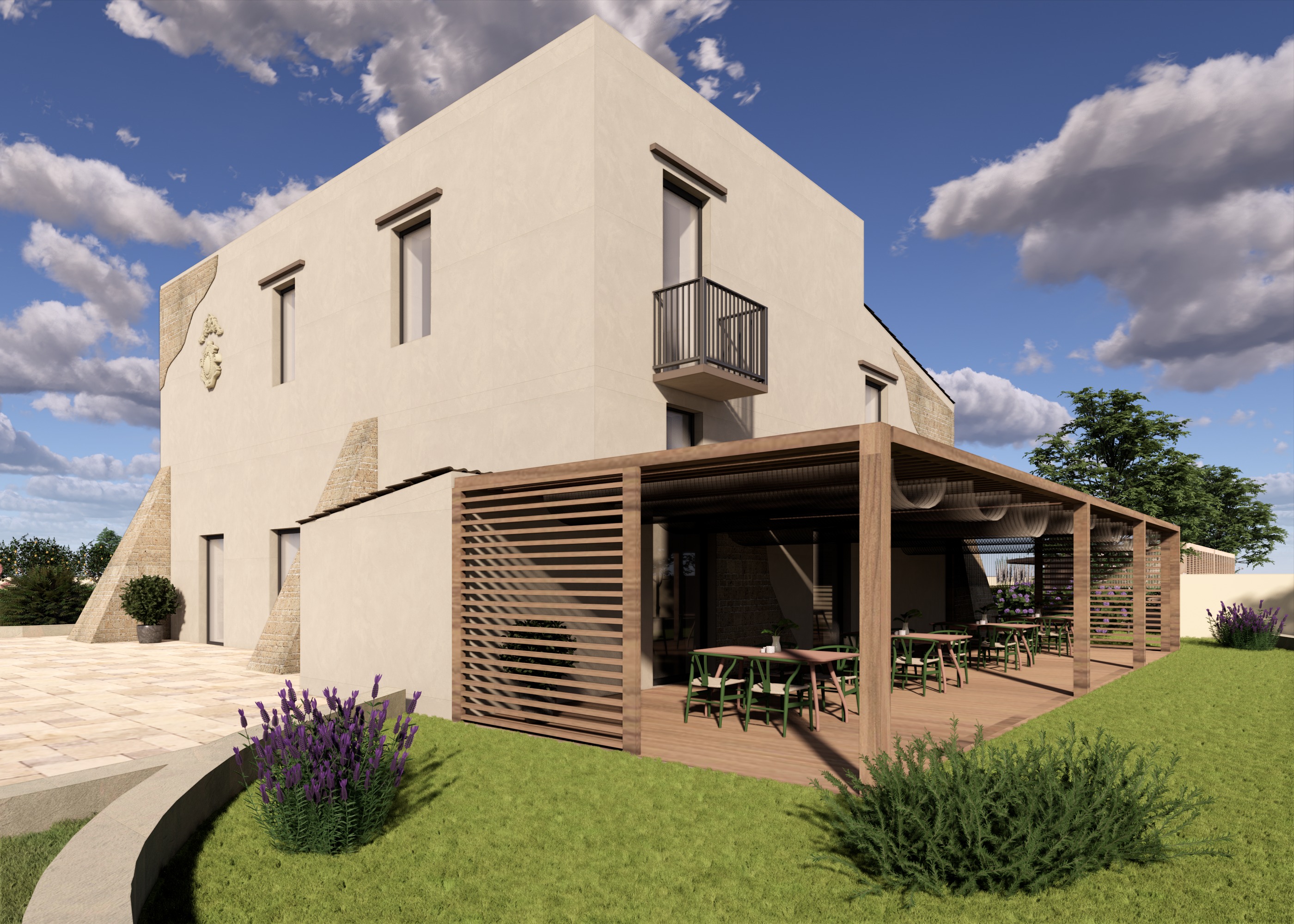 migliora il render migliora il prato migliora la pietra a pavimento migliora la tenda sulla pergola e fai passare un po di luce del sole