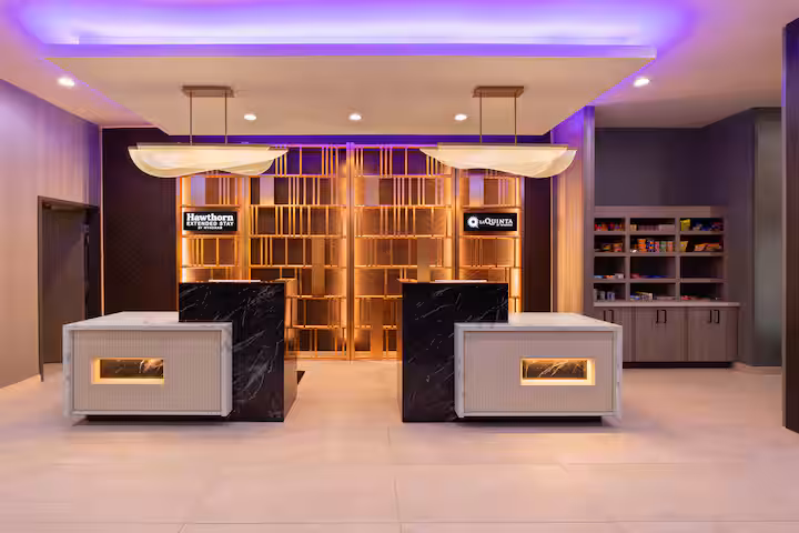 exterior shot use reference image materials and lighting add the same lattice and logos on the wall on the back of the image dont modify anything else on the original layout
