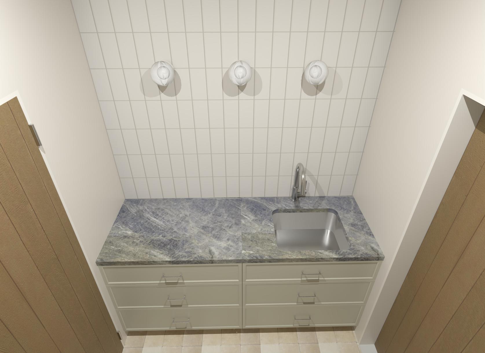 make this more photorealistic keep it bright dont make it dark dont change the point of view dont change the color of the cabinets make the cabinets very light sage green