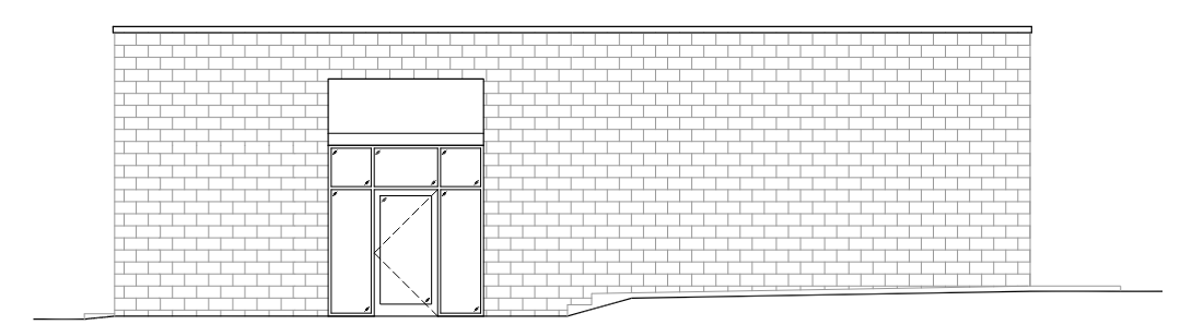 modernist exterior shot painted white cmu use bp gas station accent stripes black fabric awning above door alumimum framed windows with glazing architecture