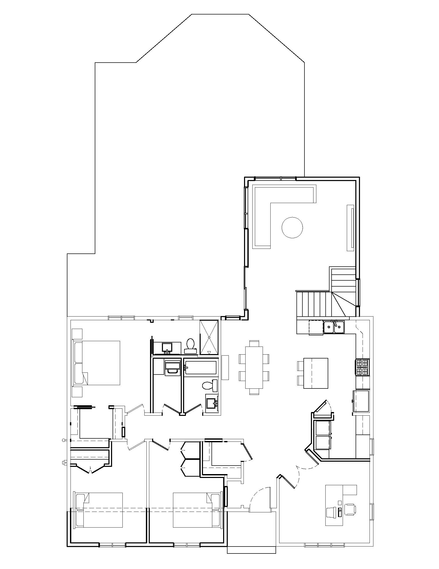 convert this floor plan into a realistic isometric 3d view of a full house show the space from an elevated angle with furniture walls and details visible use the same furniture as shows on the plan do not change the orientation of the floorplan