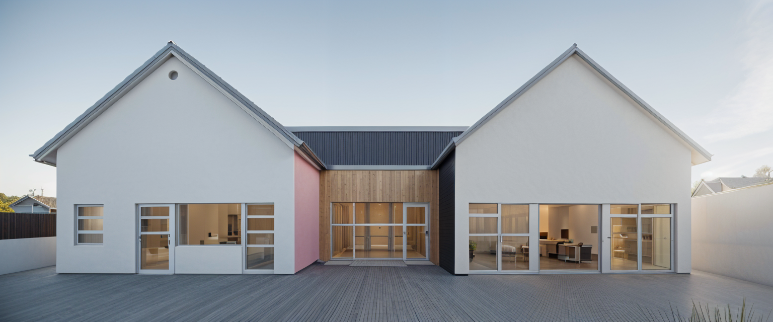 modernist exterior shot render a modern two story house with a gray facade and white horizontal siding the roof is a dark charcoal shingle highlight the large windows with reflective blue tinted glass design a black metal railing on the second floor balcony use textured stone in warm beige tones for the columns front garage door in sleek white with metallic accents set in a bright and clear atmosphere with soft natural lighting to enhance the architectural details architecture