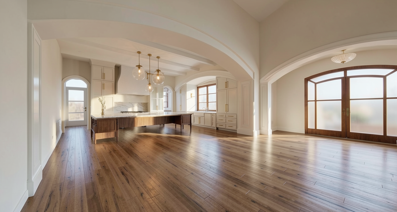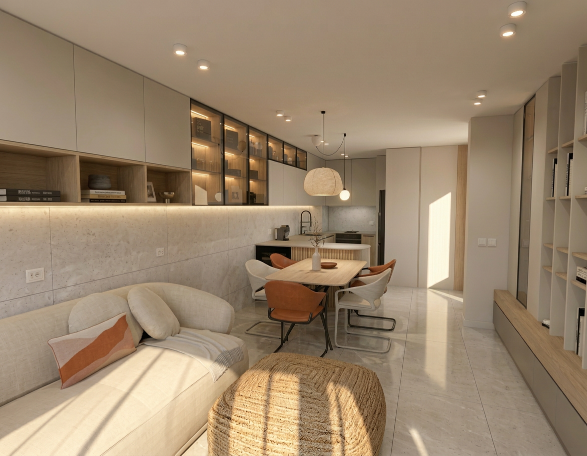 the tower cabinets on either side of the vent hood should be glass fronts with light inside