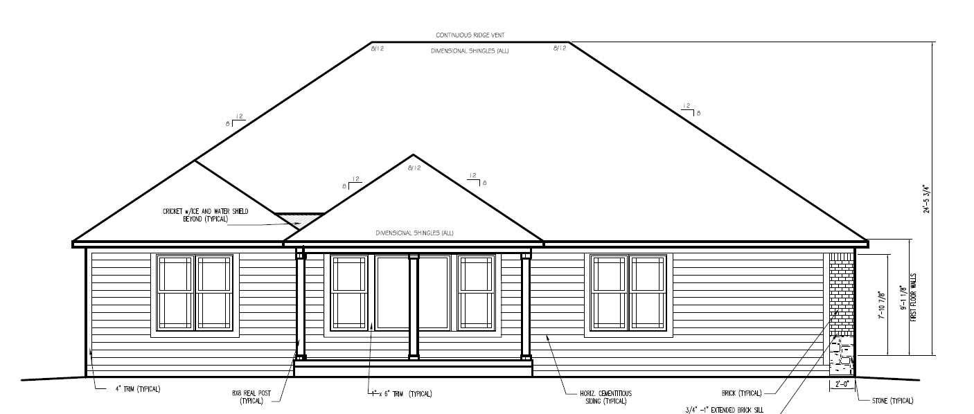 make the shingles windows and gutters black soffit colored felted wool make siding urbane bronze keep hip roofline remove corbels make posts felted wool color remove brick from wainscott but not the side
