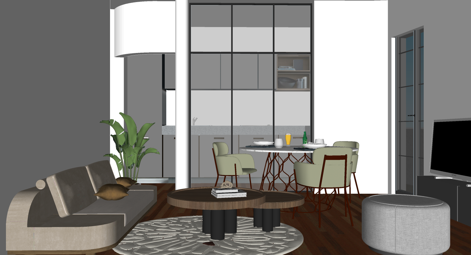 transforms the provided image into a high end photorealistic rendering with warm golden hour atmosphere soft and bright lights that keep everything in exactly the same proportions same wall finishes same materials and same spatial configuration do not move or alter the geometries of objects textures colors or furniture positions the light comes from the window on the right