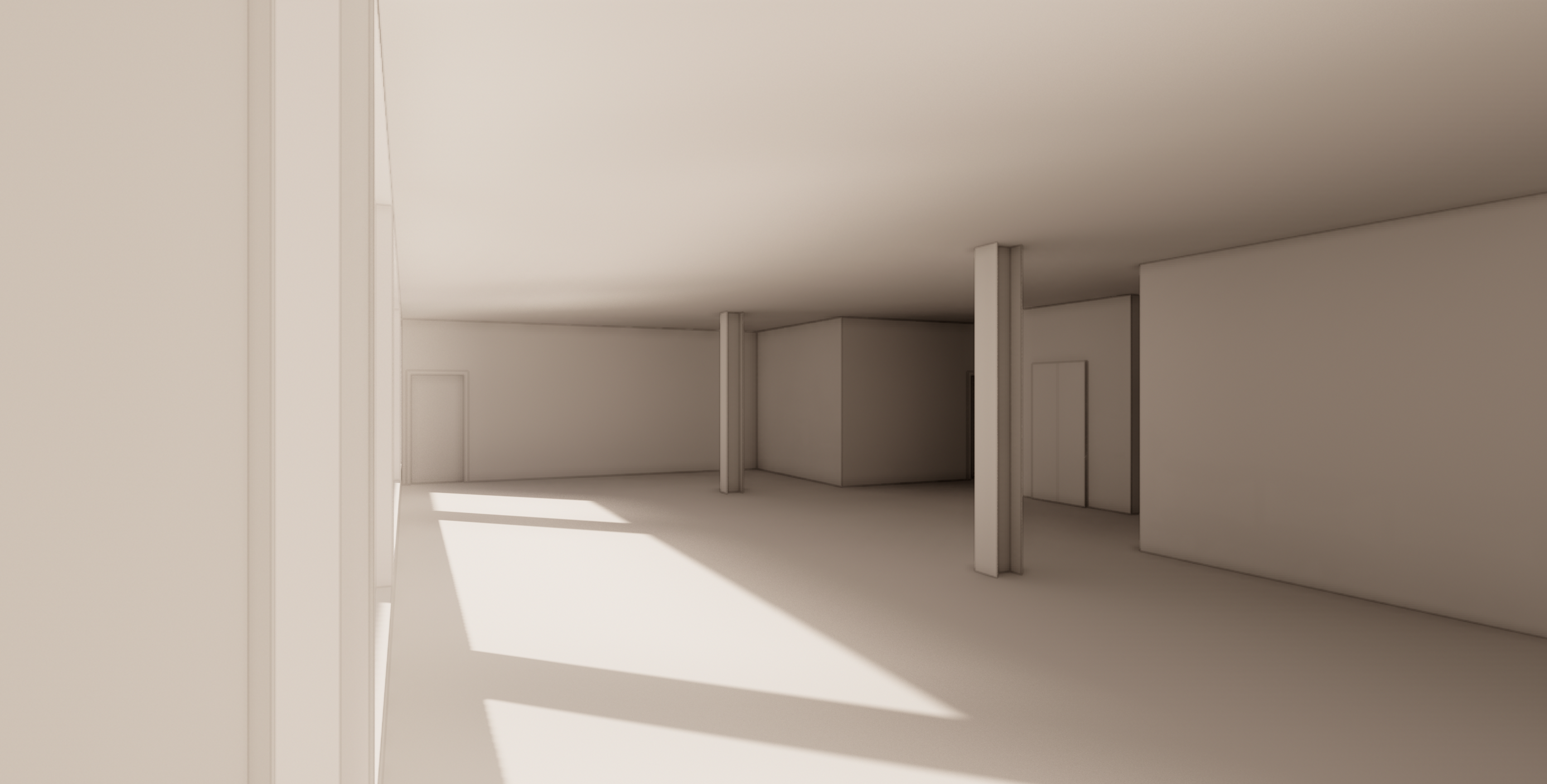 flexible event space interior designed for gatherings and cultural events architecture shaped by human erosion and time cracked aged plaster walls and weathered concrete surfaces with visible patina softened corners and worn edges from decades of human movement aged hardwood floor with subtle wear patterns large open adaptable floor area with event furniture such as tables bar some seating sculptural ceiling with eroded plaster forms and carved concrete ribs deep shadows and atmospheric lighting tactile mineral materials intimate yet versatile gathering space cinematic architectural photography