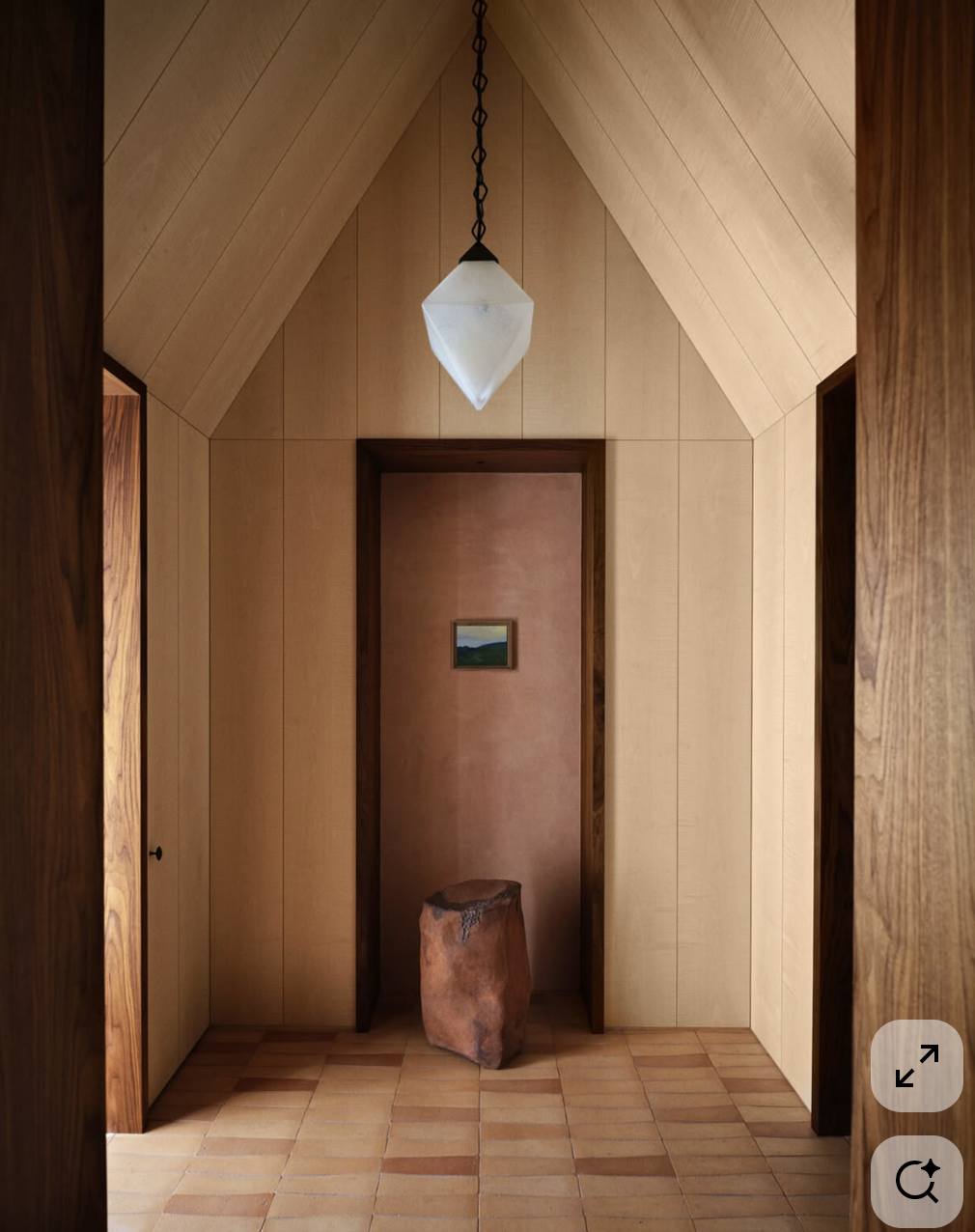 exterior shot make the walls a vertical textured plaster show a garden outside the window with romantic dappled light coming in