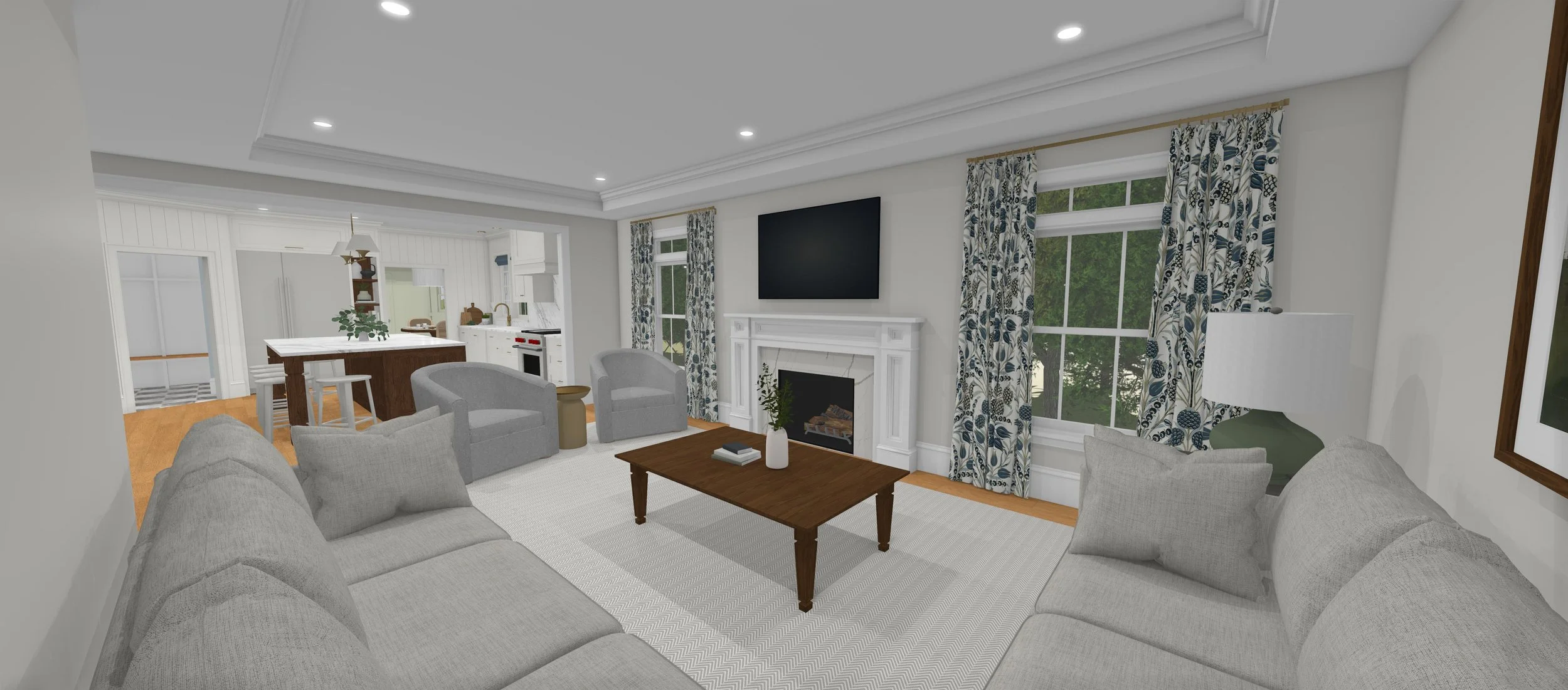 create a photo realistic version of this rendering with dramatic lighting make the cabinetry a soft neutral color use walnut wood cabinetry for the vanity