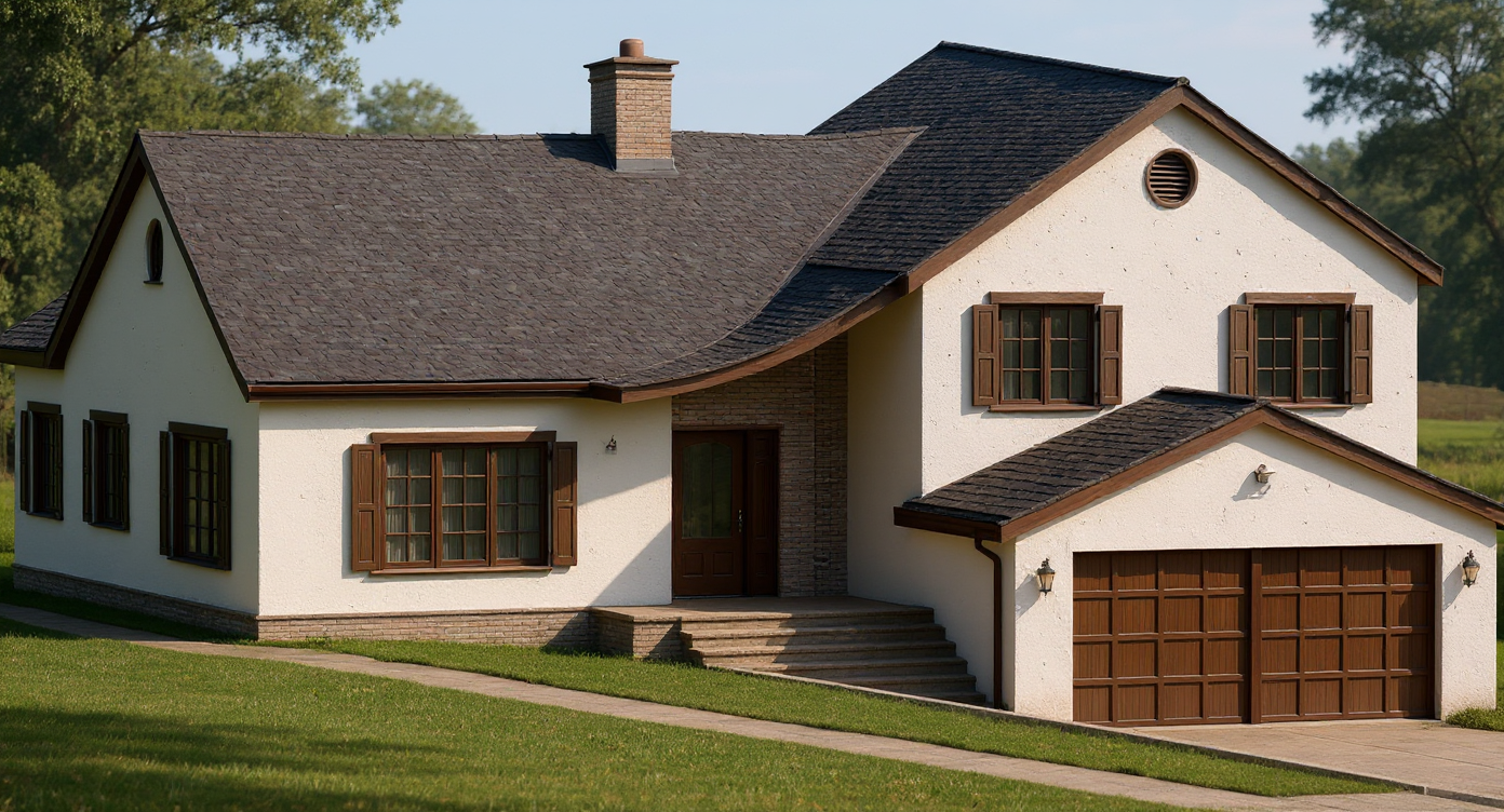 tudoe style house white stucco walls change rendering style to water color sketch remove water change to water color sketch rendering style