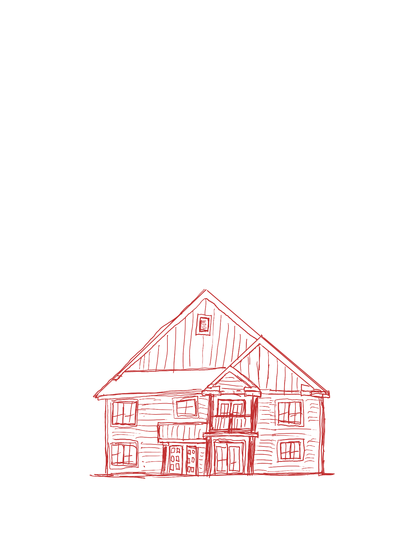 contemporary perspective shot contemporary wide angle shot traditional architectural style with pitched shingled roofs in dark color horizontal lap siding with some vertical board and batten accent siding in complimentary gray tones black frame windows with simple grids 6 window trim and corner trim traditional columns at first floor covered porch front doors are simple paneled doors louver in peak of gable background cut grass with low shrubs traditional deck with black metal railing typical sliding patio door architecture