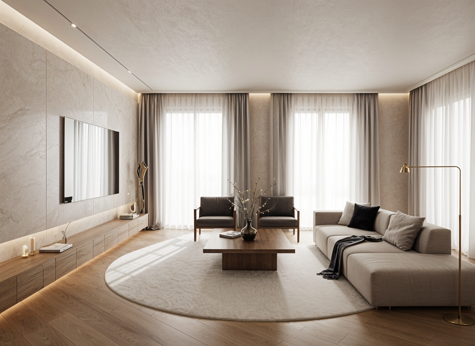wide cinematic view from the back of a semi outdoor cinema in downtown djibouti redesigned to keep the essence of the odeon building intact while elevating it into a modern cultural landmark inside the cinema accommodates over 50 people with plush deep red donut couches organized in neat rows all facing a large central screen the original tall side windows remain untouched framing lush green trees outside that catch the warm glow of early afternoon sunlight the interior atmosphere is cozy yet sophisticated cherry wood finishes smooth stucco walls and glowing string lights draped across the structural beams create warmth and intimacy the screen illuminates the space as people settle into their seats chatting and enjoying the nostalgic yet elevated setting extending beyond the cinema the grand entrance welcomes visitors with a wide open plaza framed by planters filled with native greenery and shaded seating sculptural steps and clean mediterranean inspired lines mark the entryway while the iconic vertical odeon sign glows in soft led illumination a clear landmark for the district the surrounding street is animated with life pedestrians walking along newly activated sidewalks small groups gathered at outdoor caf style tables and subtle ambient lighting enhancing the scene the urban garden setting integrates palm trees flowering plants and low landscaped beds around the cinema softening the built environment and connecting the project to the neighborhood the whole design balances nostalgia modern mediterranean elegance and urban vibrancy transforming the odeon into a cultural third place for djibouti
