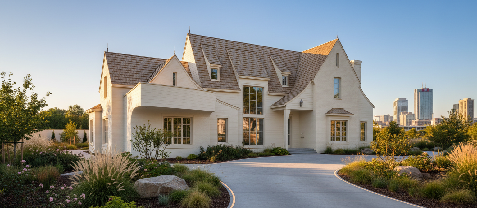 create a modern bathroom interior based on a floor plan layout featuring a luxurious serene atmosphere use a soothing color palette with soft whites and warm beige for walls complemented by travertine countertop and shower area the bathtub area should be inviting with a white tub the vanity area should have sleek dark wood finishes with elegant chrome fixtures add in ambient natural light for a calming effect highlighting the glossy surfaces
