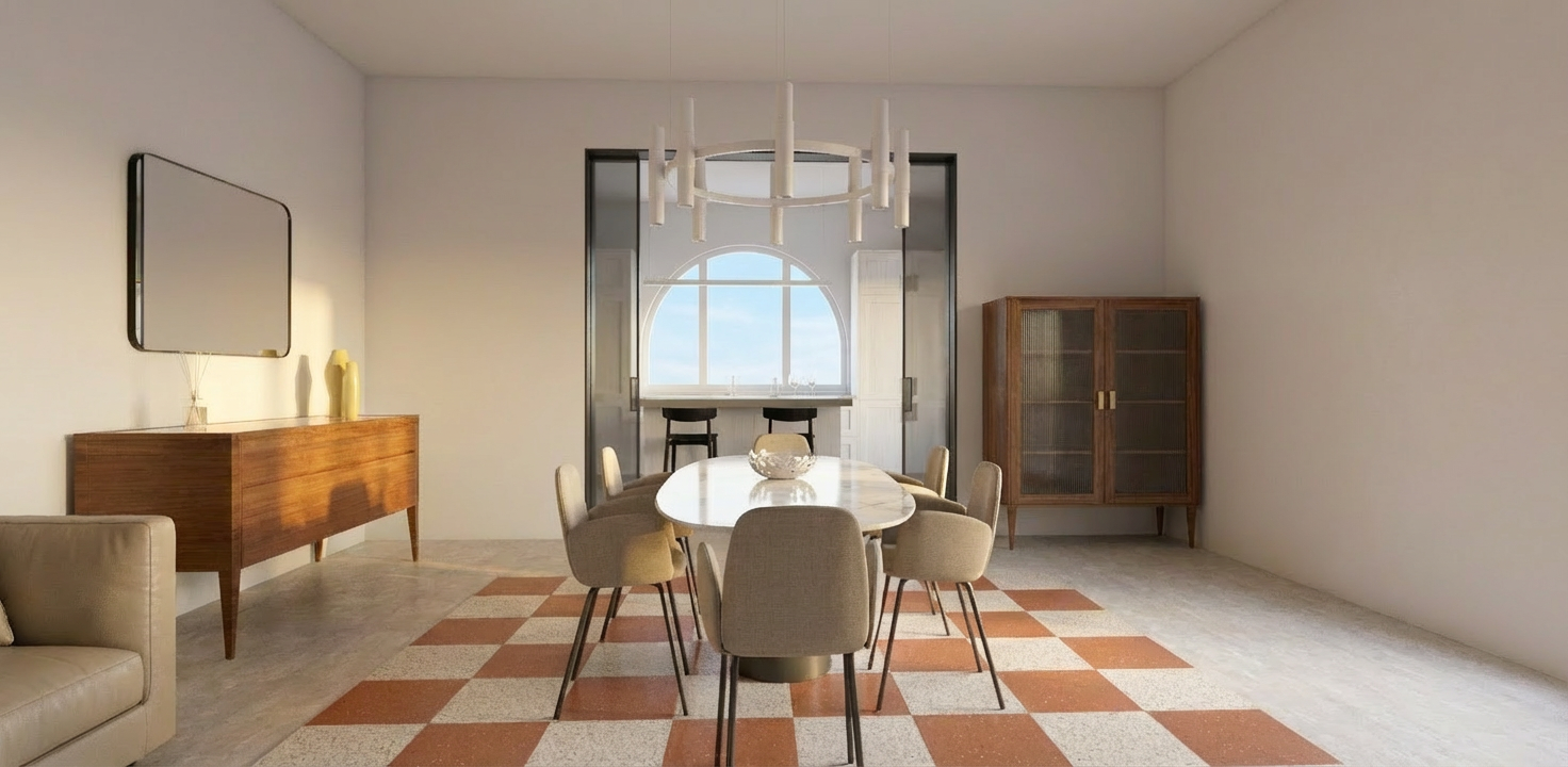 elimina profili centrali finestra ad arco lampadario sul tavolo in vetro e metallo