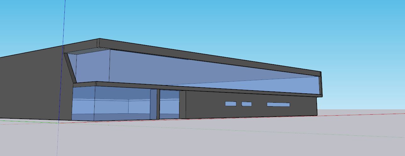 photorealistic architectural render of a contemporary two storey office commercial building keeping exactly the same massing and geometry as the provided model flat roof strong horizontal volumes upper floor cantilevered angular and slightly inclined glazed front fa ade on the first floor fully glazed ground floor corner long opaque side volume and three small horizontal windows on the right side fa ade do not redesign the architecture do not change proportions openings inclinations or overall shape exterior materials matte black anthracite metal cladding panels dark aluminium frames large clear glass surfaces from floor to ceiling add a continuous warm white led strip integrated along the perimeter edge of the upper volume emphasizing the sharp architectural lines scene setup dusk blue hour lighting soft cinematic sky warm interior lighting visible through the glass realistic reflections elegant corporate atmosphere minimal contemporary landscaping with ornamental grasses low garden lights clean concrete sidewalks asphalt road professional architectural visualization style camera view corner perspective from pedestrian eye level wide angle lens similar composition to a professional exterior architecture photo showing both the front fa ade and the long right side fa ade rendering style ultra realistic high end archviz realistic materials pbr textures global illumination ray traced reflections sharp details soft shadows clean composition premium commercial building visualization negative prompt do not modify the building design do not add floors do not change fa ade layout do not add random people do not add excessive furniture do not create a different building do not distort the perspective