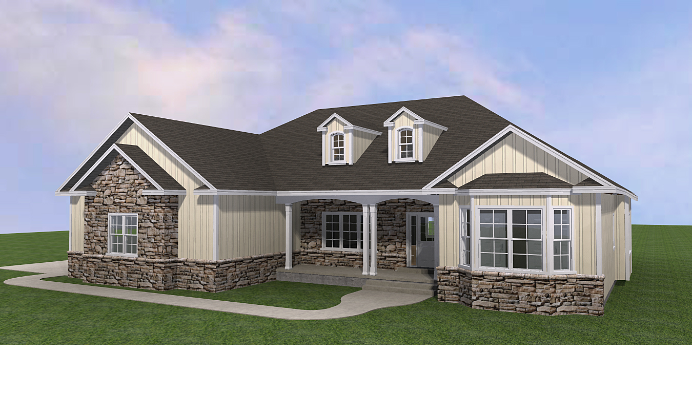 a modern house retain the exact structure colors and window arrangement rooflines siding foundation height and proportions exactly as shown in the reference image integrate into the terrain there are just a few trees mixed hardwoods that are mostly on the sides of the image add cooler afternoon sunlight subtle dappled highlights across the siding and grass create ultra realistic lighting crisp shadows detailed textures in the siding and glass reflections and an overcast sky show only a few lights visible inside render in hyper realistic architectural visualization quality 8k resolution add a driveway tying into the concrete garage door apron make it the summer season add realistic landscape