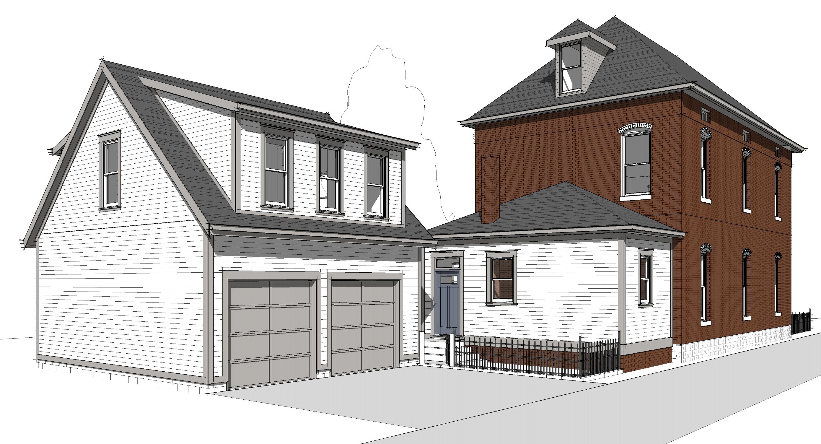 driveway runs along the side of the main house